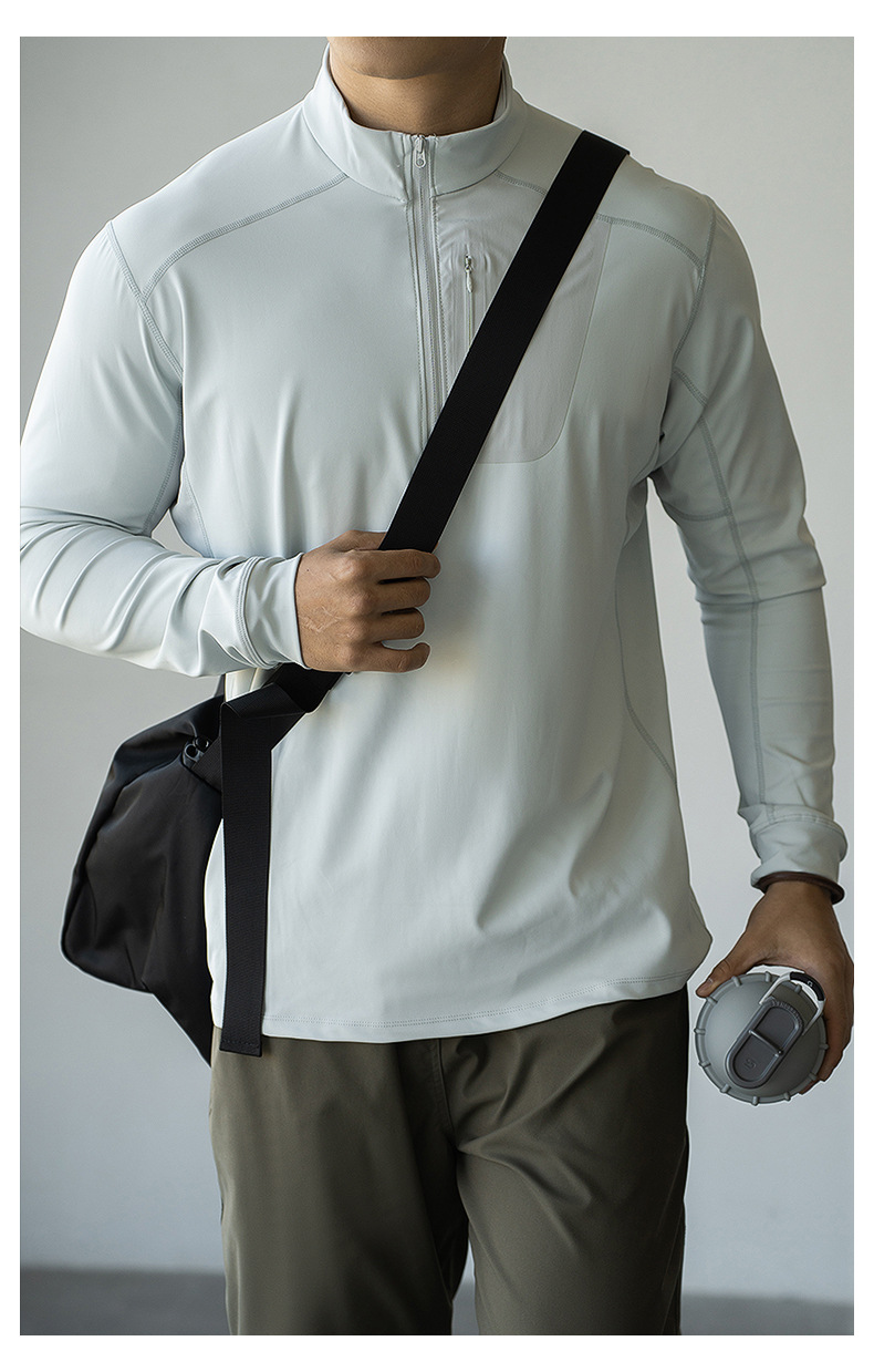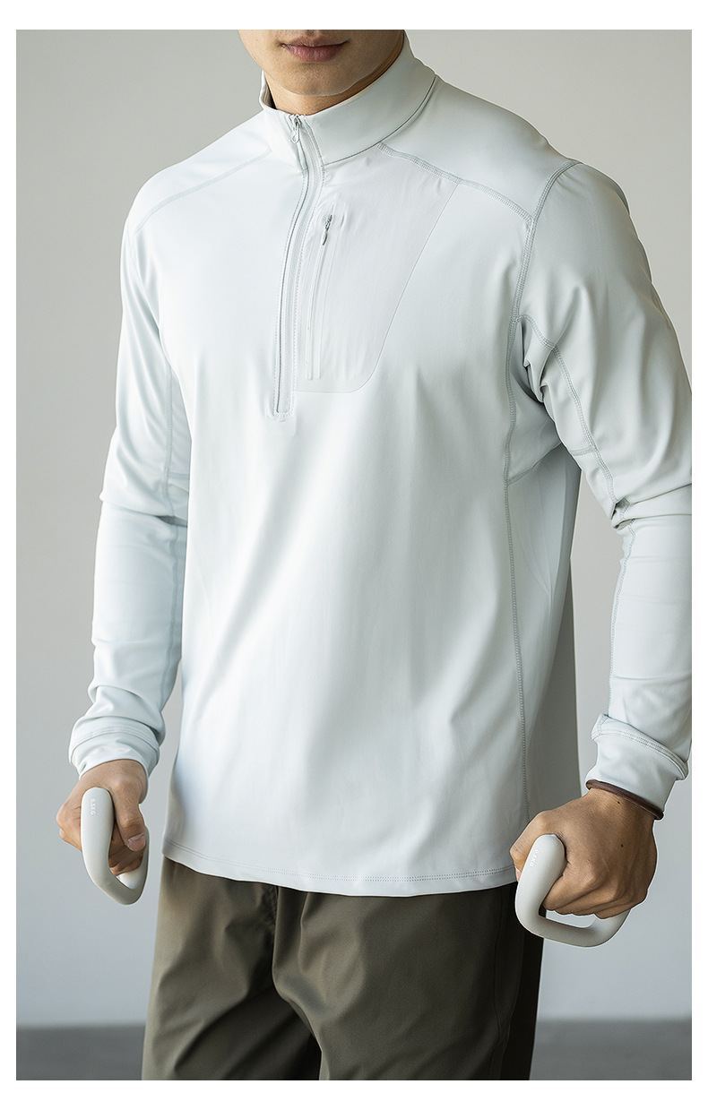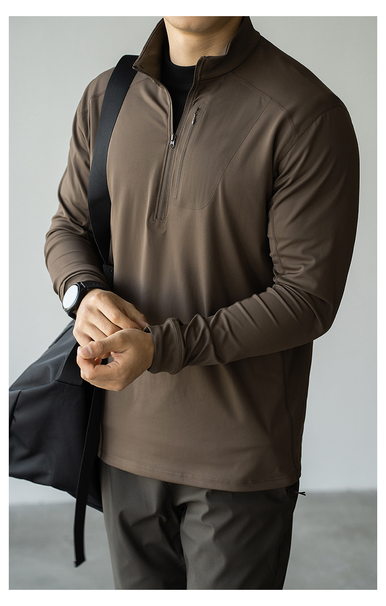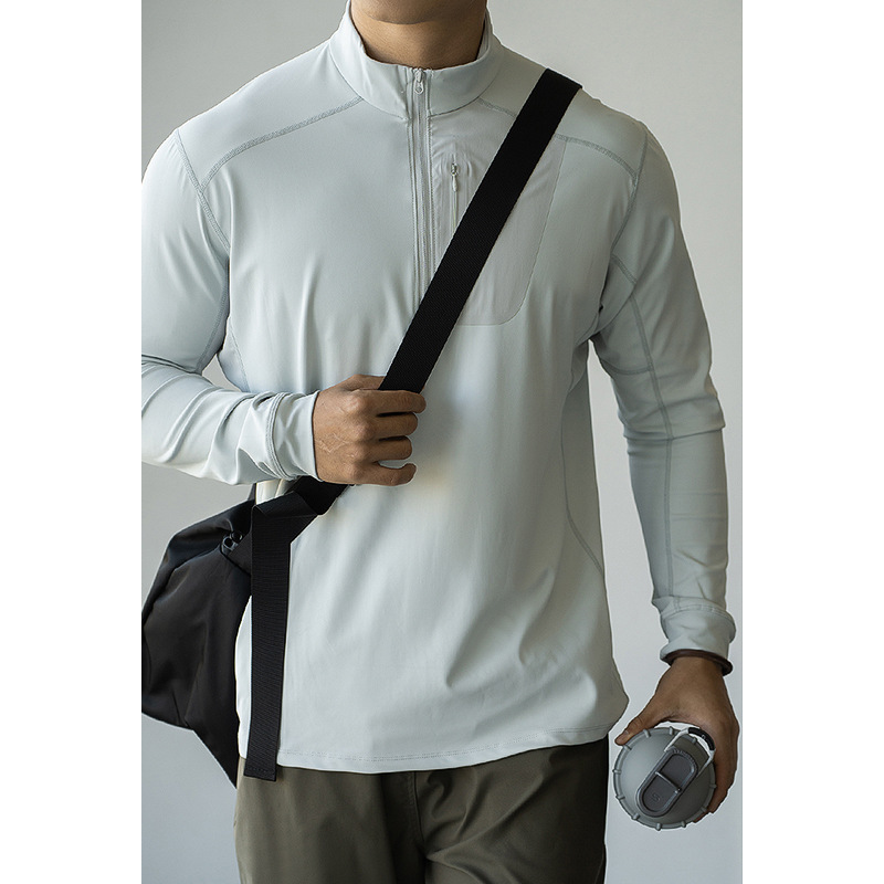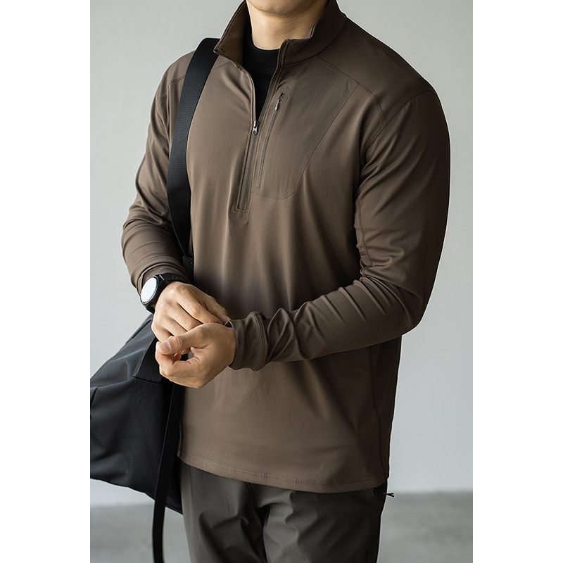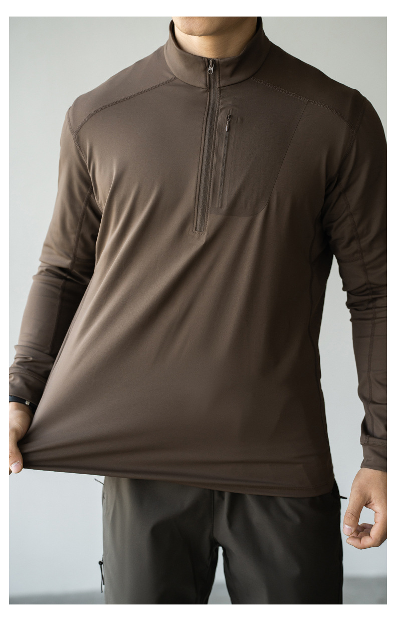 4 면 반 지퍼 퀵 드라이 긴팔 티셔츠 남자 2025 봄 야외 레저 스포츠 피트니스 베이스 셔츠스토어 가기
