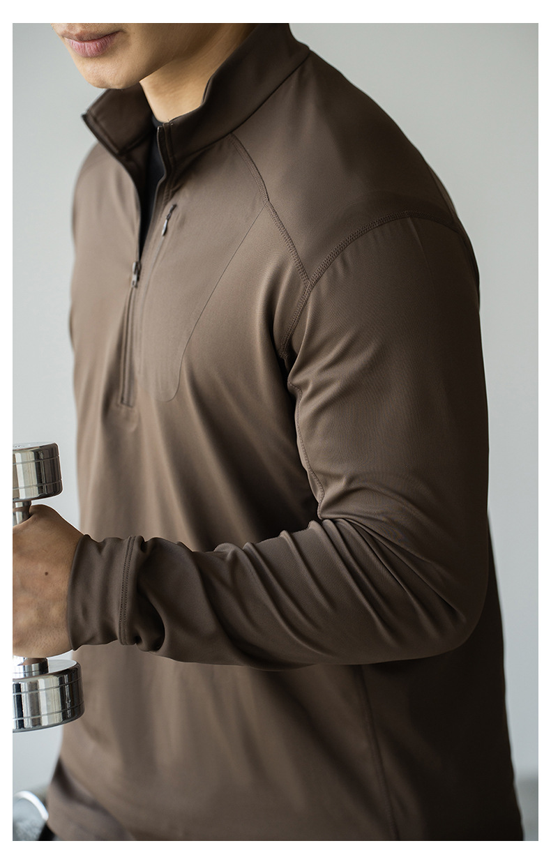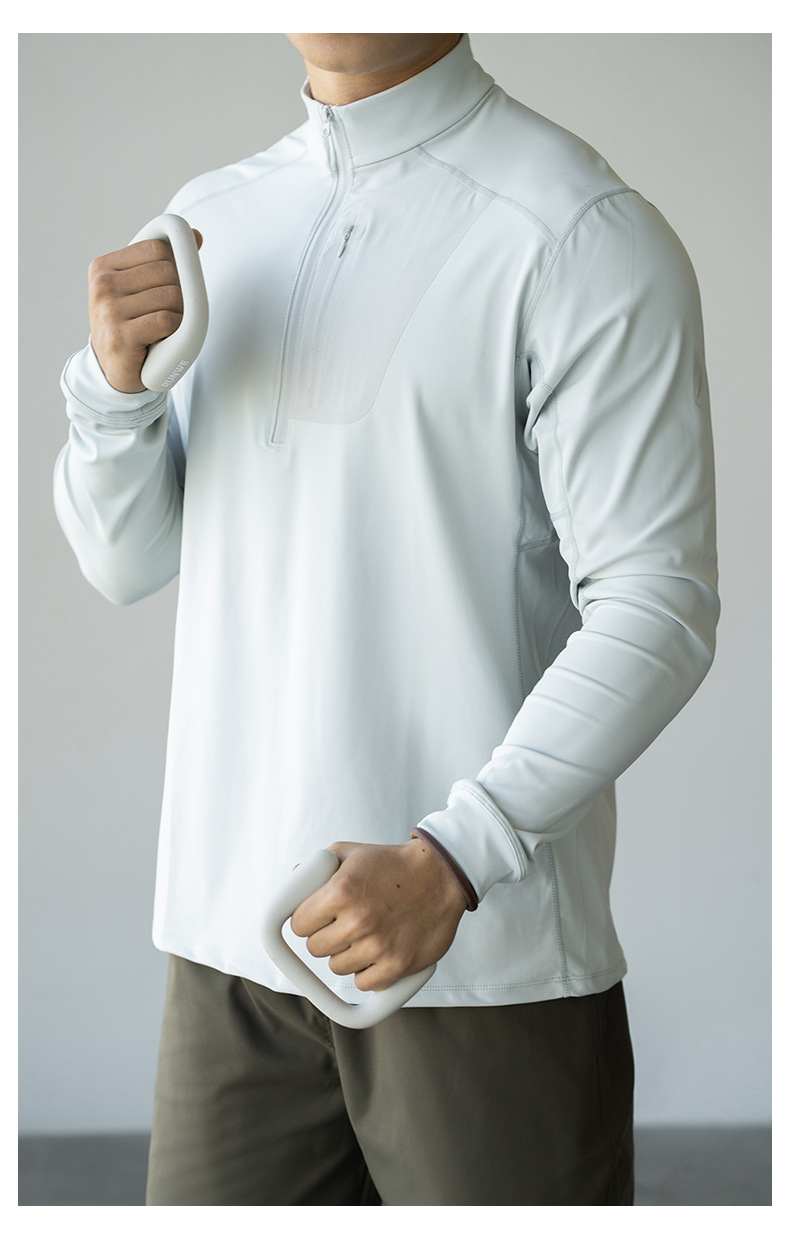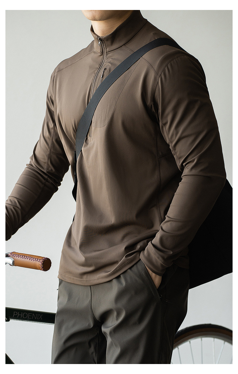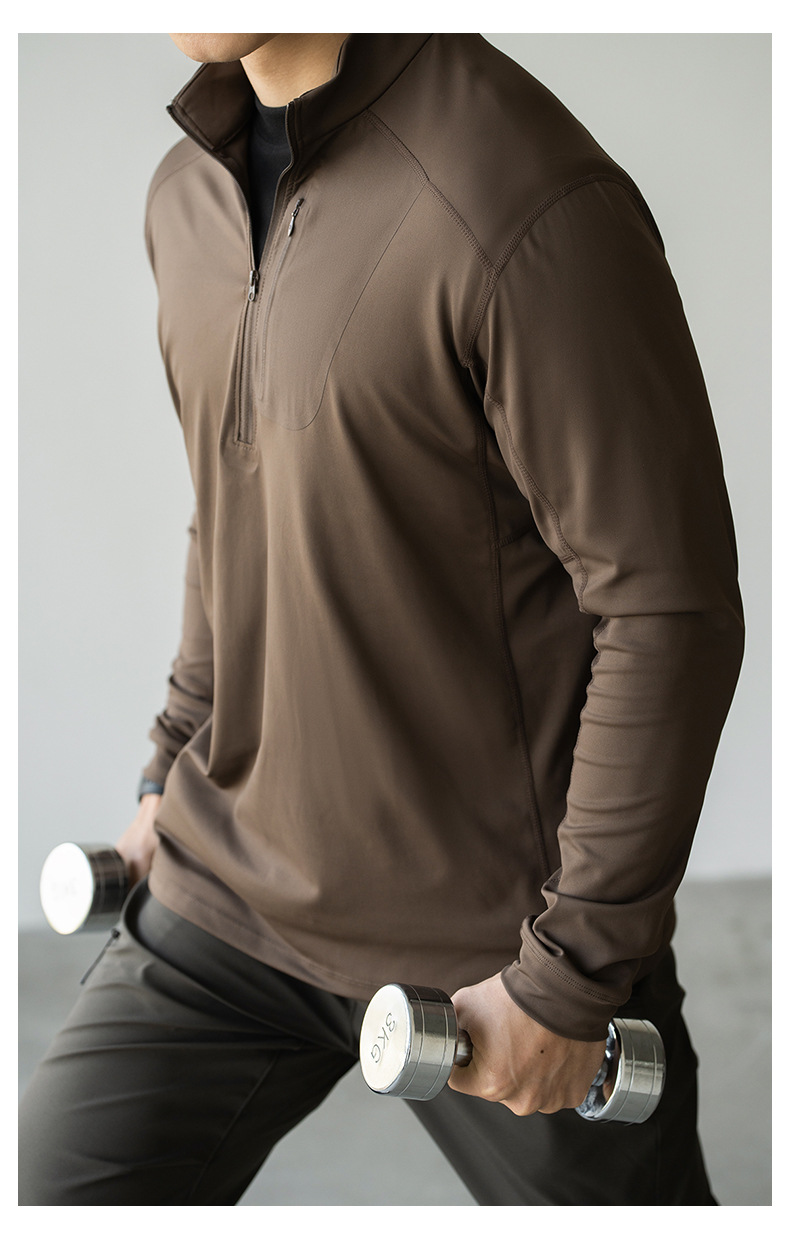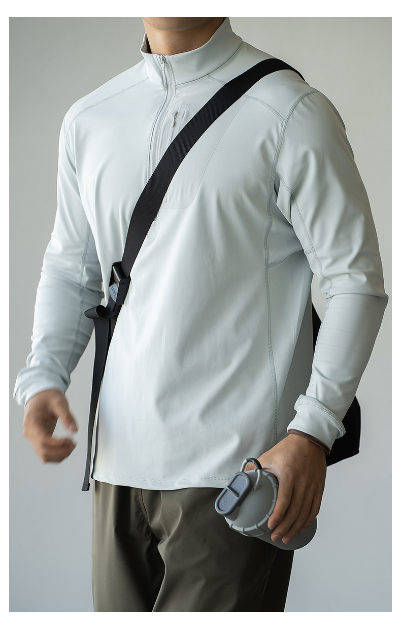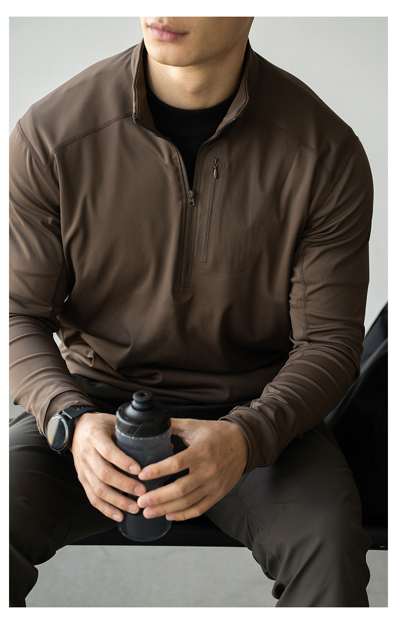 4 면 반 지퍼 퀵 드라이 긴팔 티셔츠 남자 2025 봄 야외 레저 스포츠 피트니스 베이스 셔츠스토어 가기