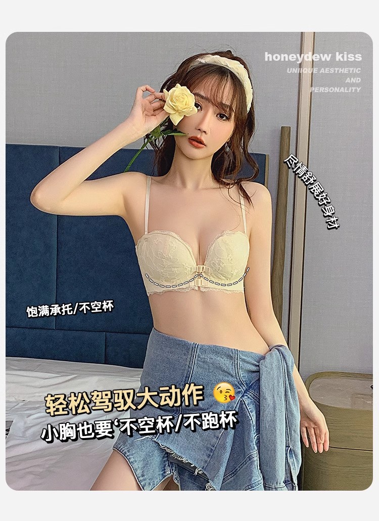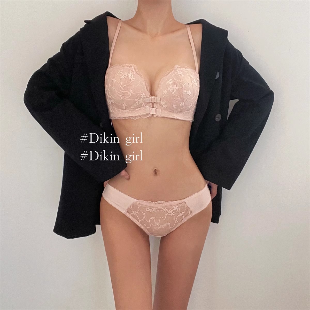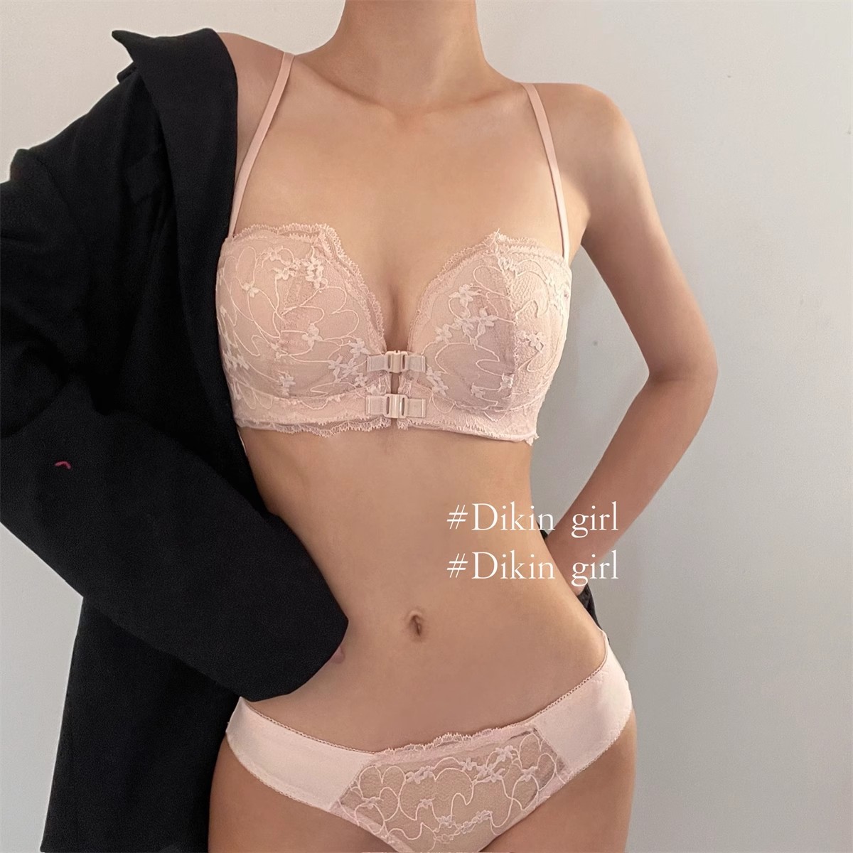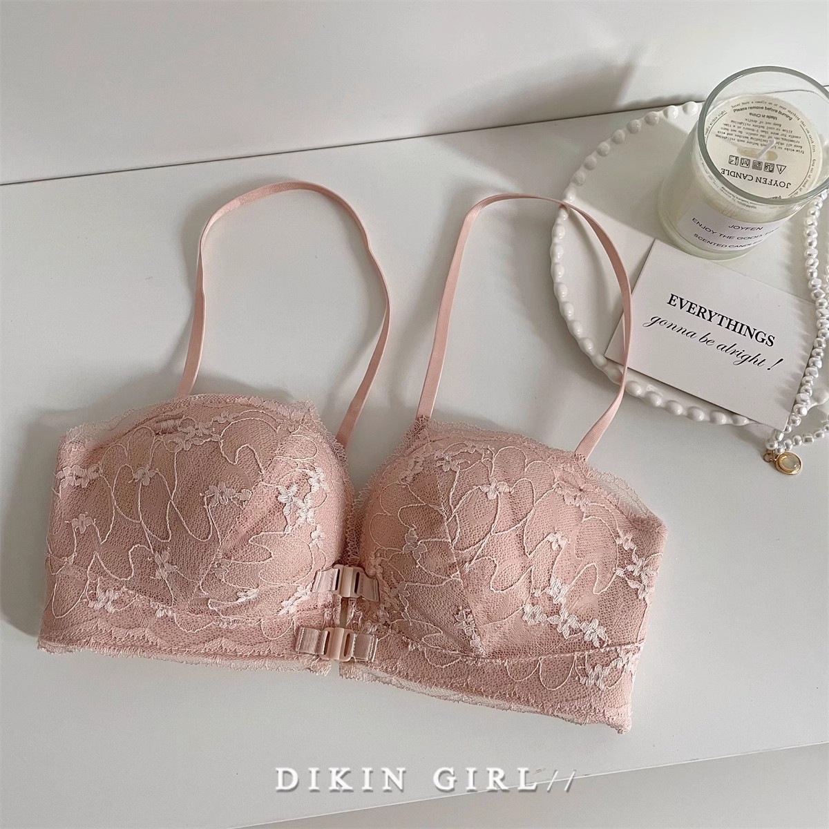 전면 버튼 일본 소녀 섹시한 작은 가슴 최고 푸시 업 큰 속옷 순수 레이스 아름다운 뒤로 얇은 벨트 브래지어 세트