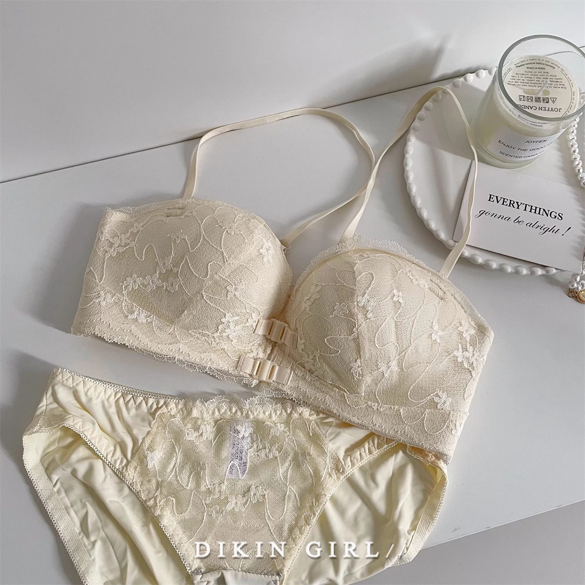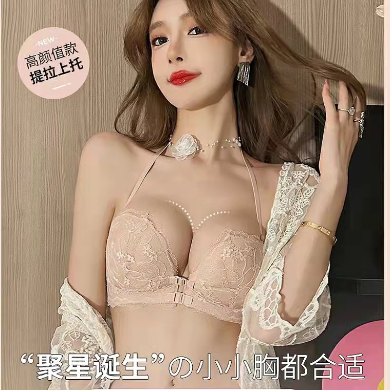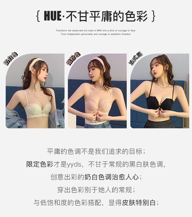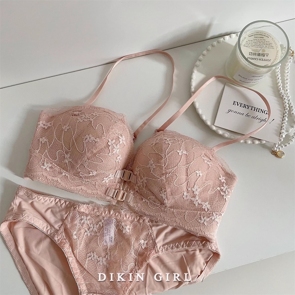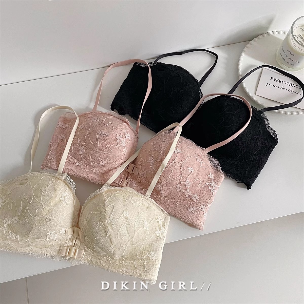 전면 버튼 일본 소녀 섹시한 작은 가슴 최고 푸시 업 큰 속옷 순수 레이스 아름다운 뒤로 얇은 벨트 브래지어 세트