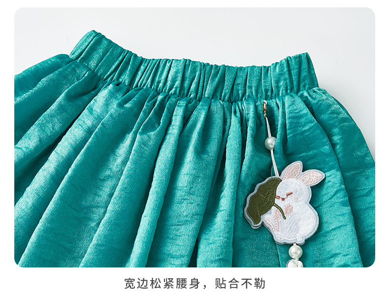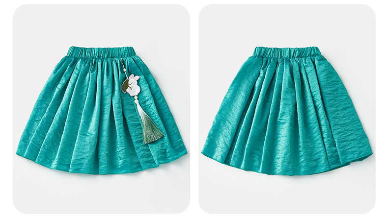 2025 아기 소녀의 골동품 세트 여름 치마 투피스 세트 3612 소녀의 중국 스타일 주름 치마 한푸