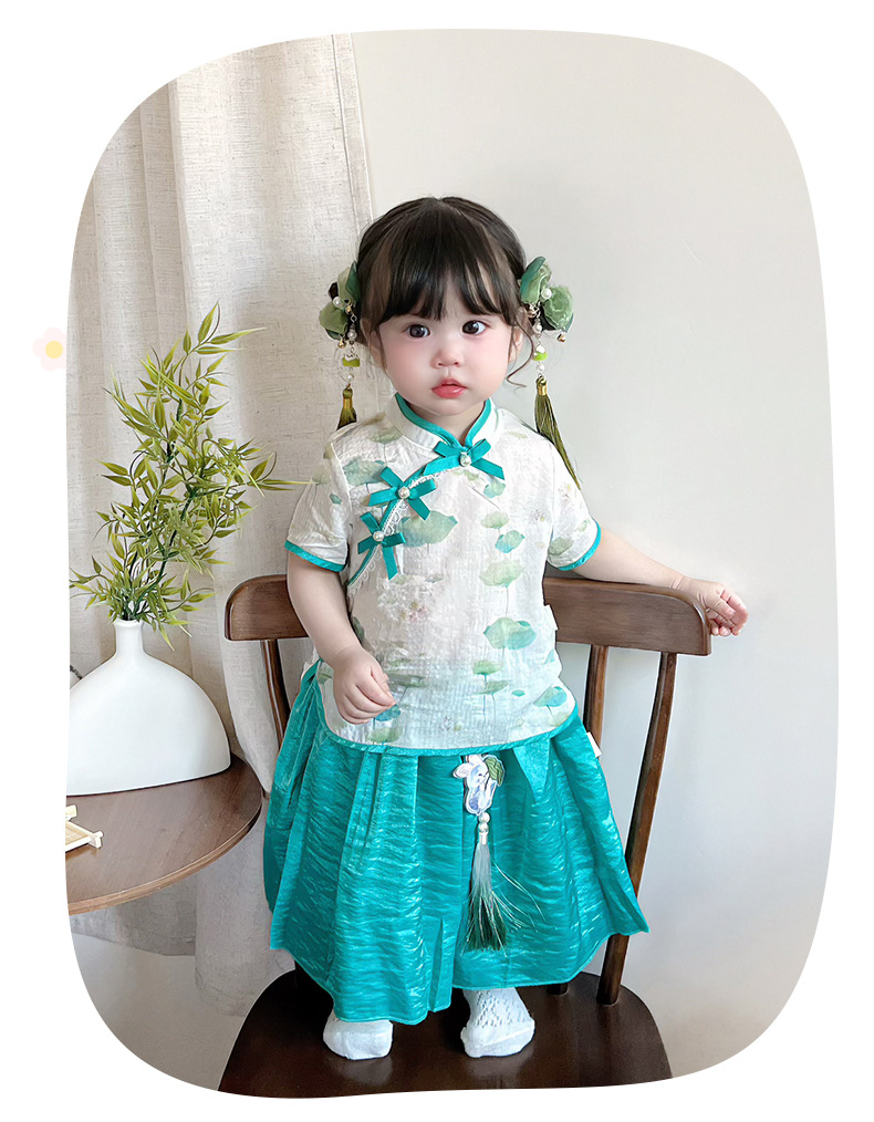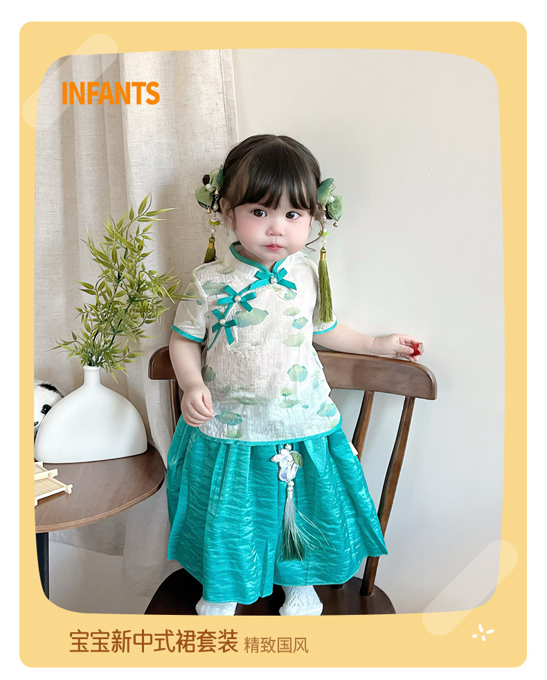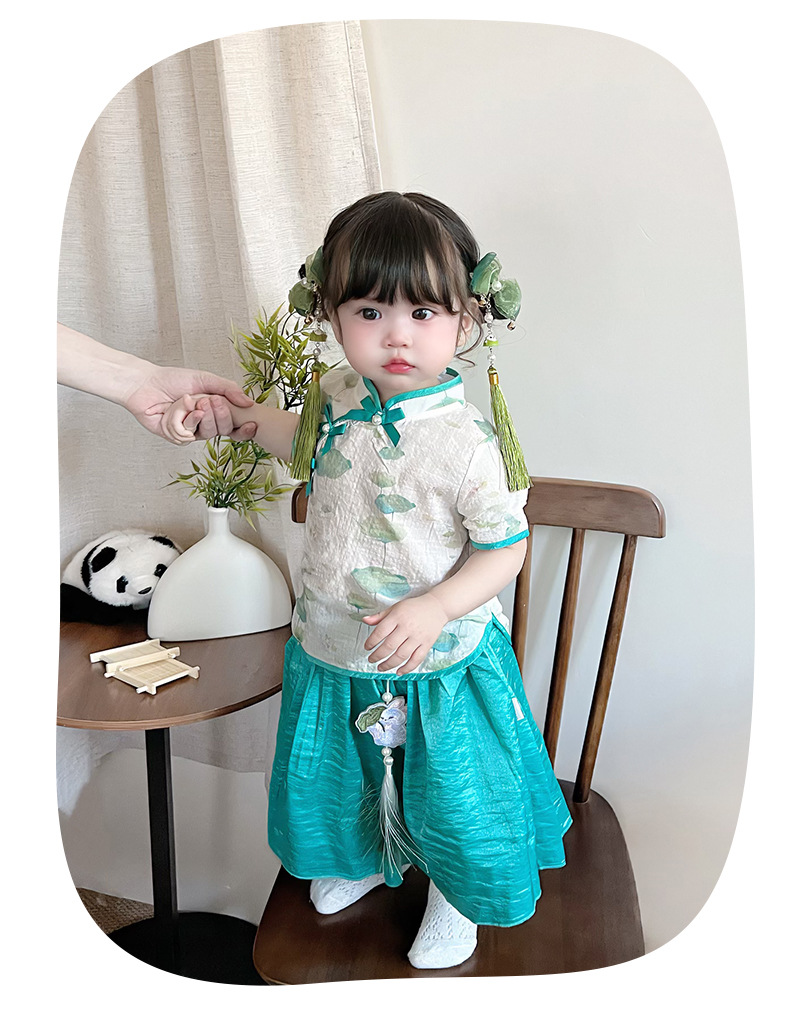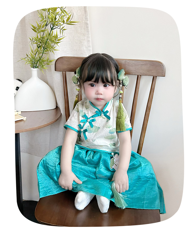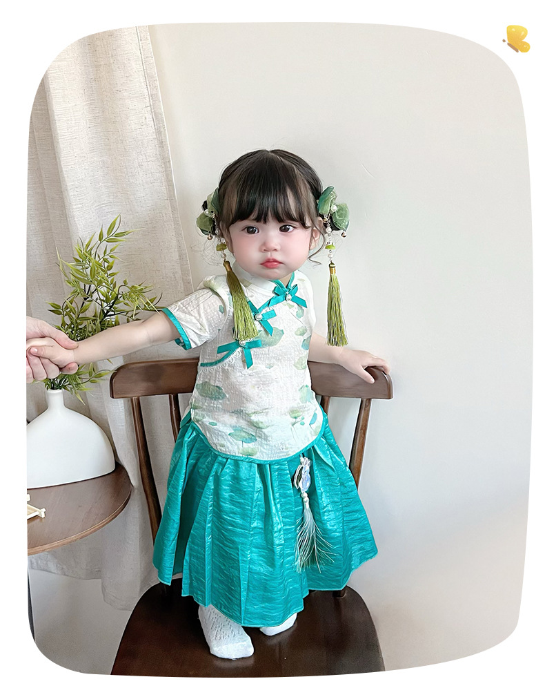2025 아기 소녀의 골동품 세트 여름 치마 투피스 세트 3612 소녀의 중국 스타일 주름 치마 한푸스토어 가기