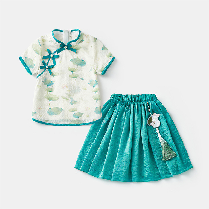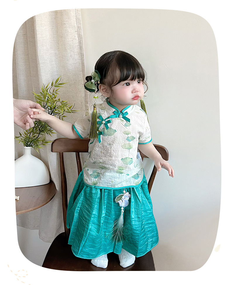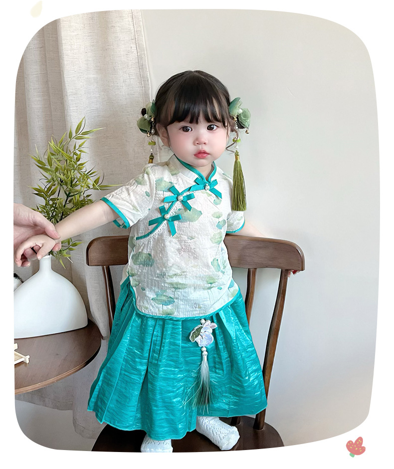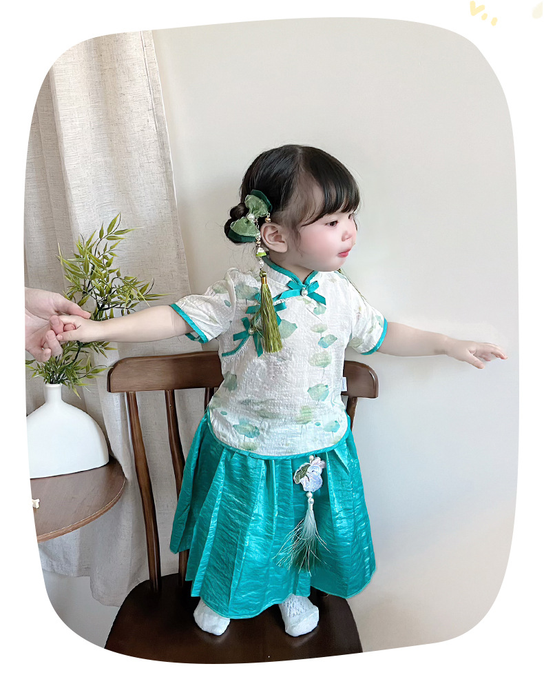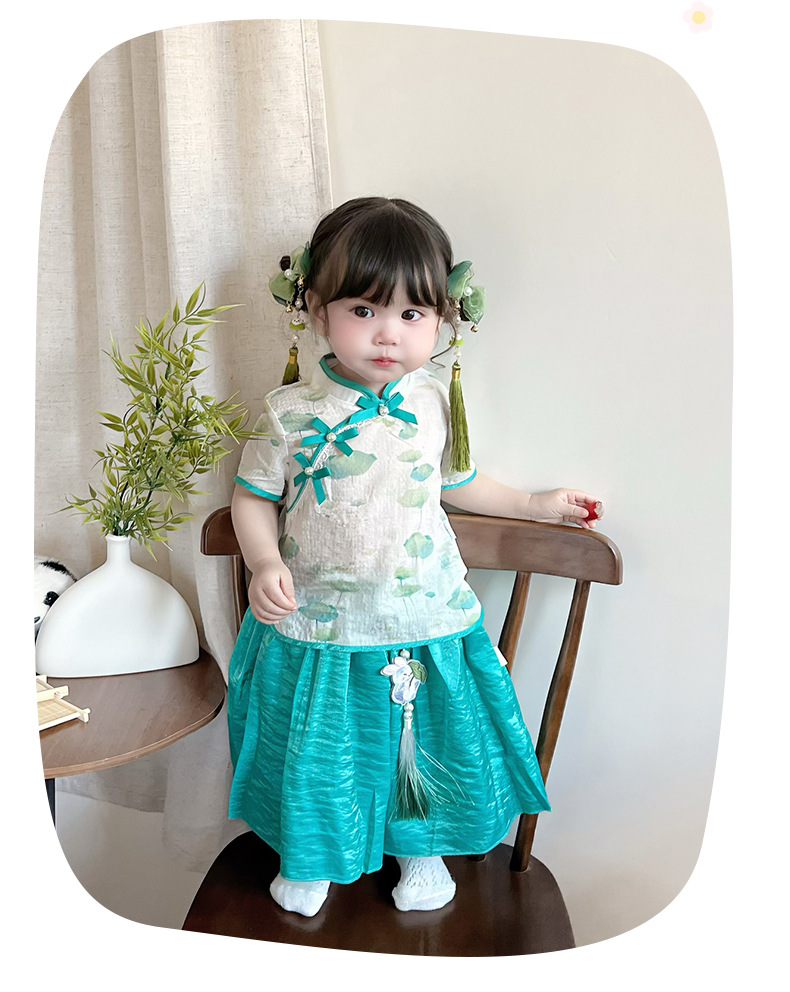 2025 아기 소녀의 골동품 세트 여름 치마 투피스 세트 3612 소녀의 중국 스타일 주름 치마 한푸스토어 가기