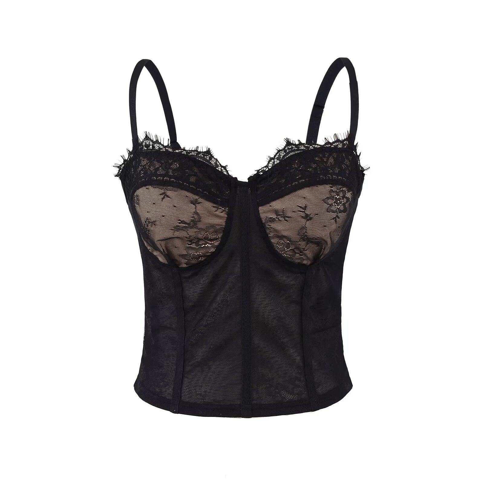 25003-유럽과 미국 스타일의 섹시한 슬림 슬림 슬림 튜브 탑 2025 새로운 핫 걸 조커 레이스 어깨 끈