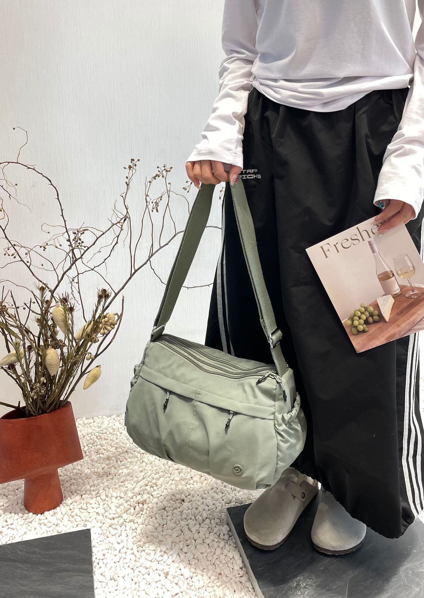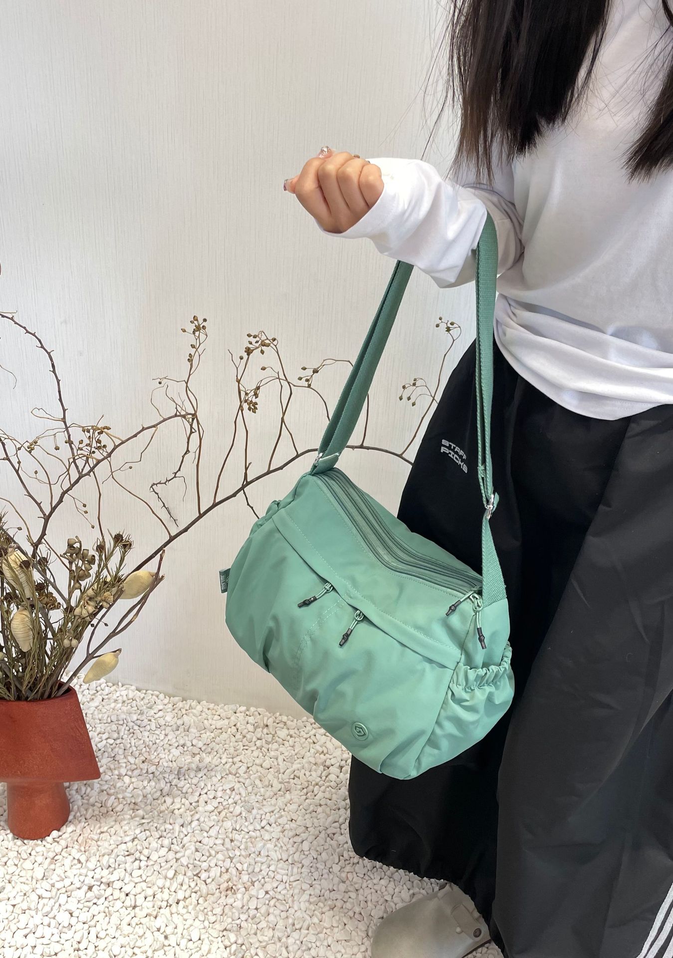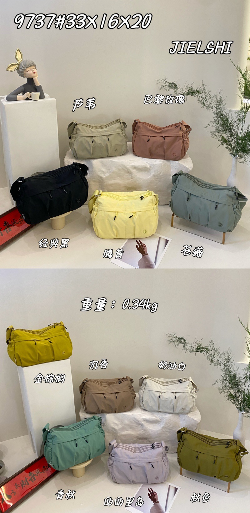 2025 Jielanshi 새로운 한국 스타일 나일론 가방 마카롱 싱글 숄더 크로스 바디 다용도 여행 및 거리 작은 사각형 가방