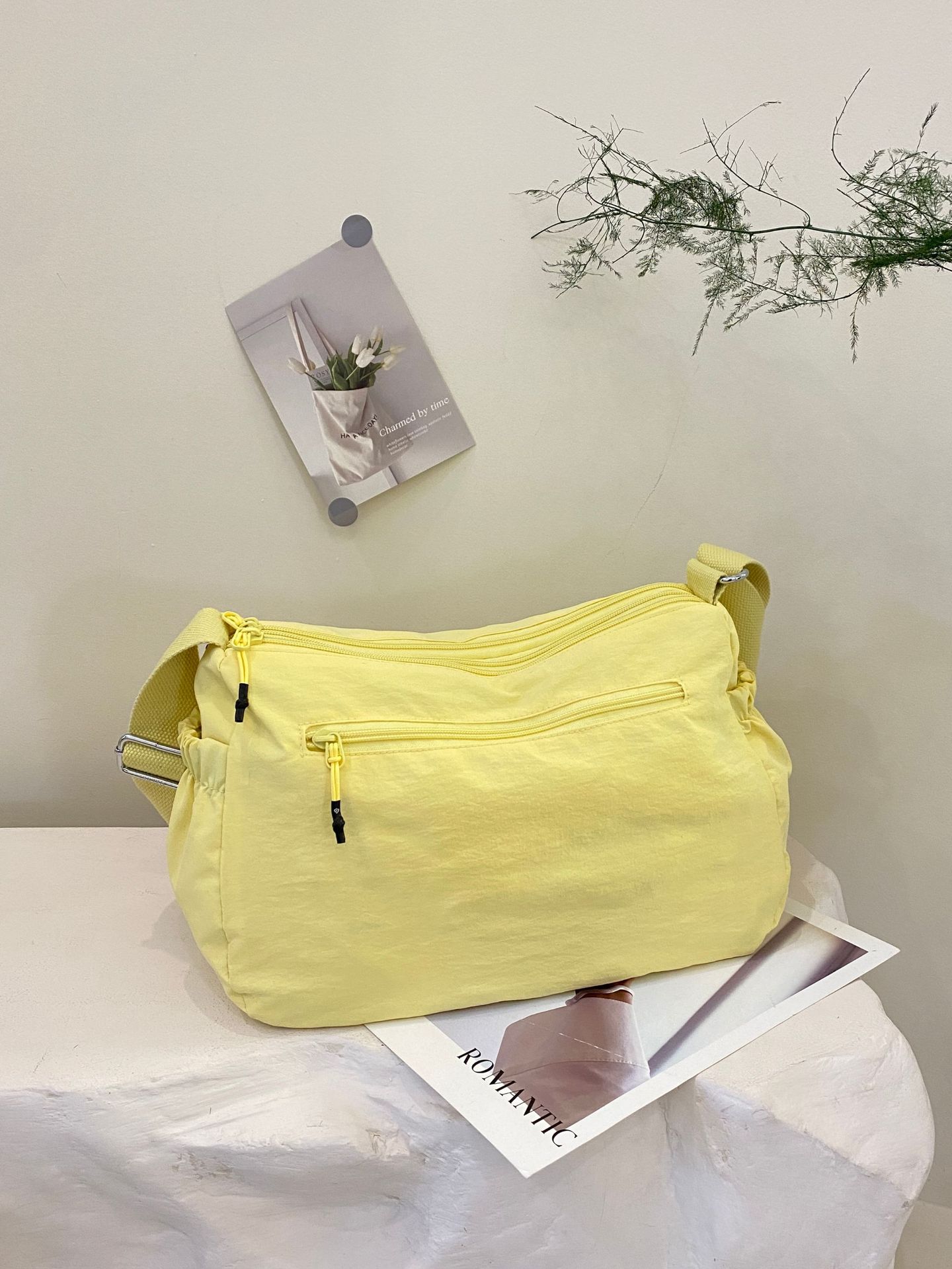 2025 Jielanshi 새로운 한국 스타일 나일론 가방 마카롱 싱글 숄더 크로스 바디 다용도 여행 및 거리 작은 사각형 가방스토어 가기