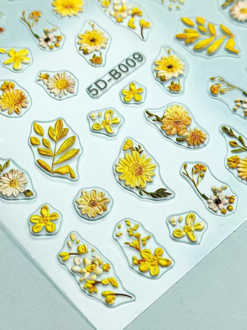 새로운 봄과 여름 신선한 꽃 네일 아트 접착 구호 스티커 빈티지 토템 데이지 독립 종이 카드 포장