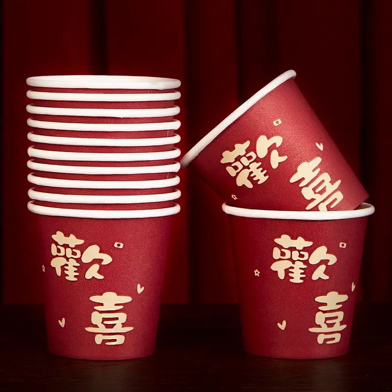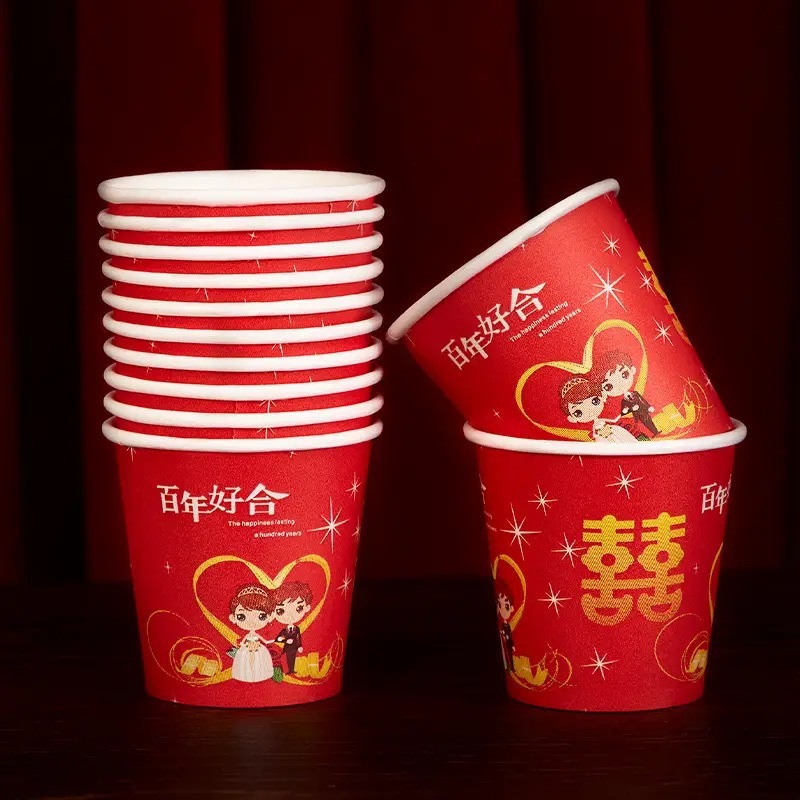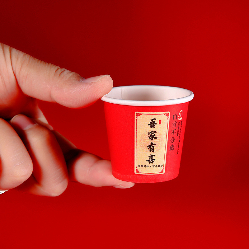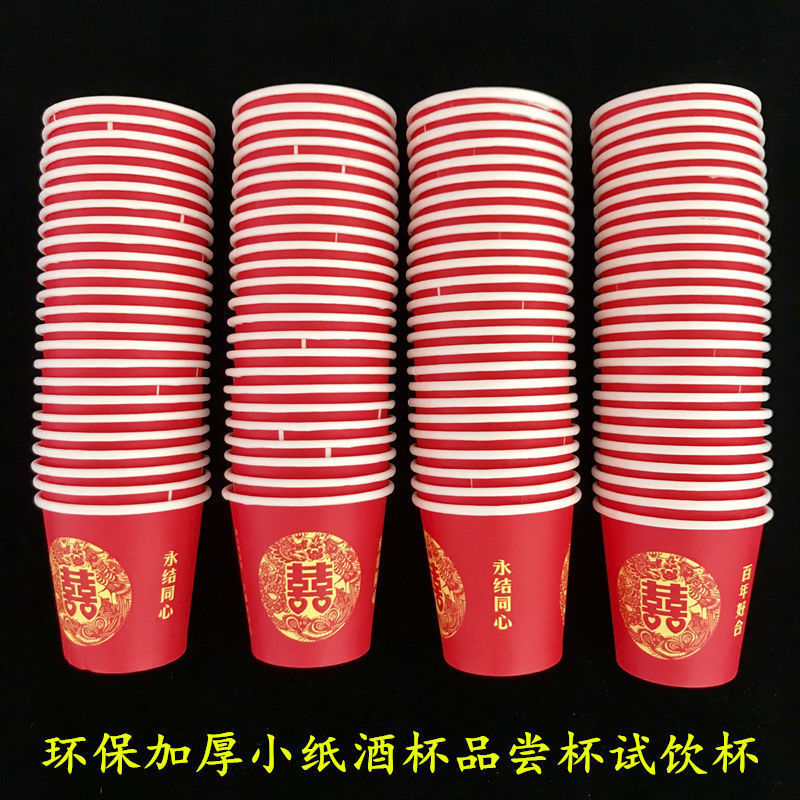 일회용 웨딩 토스트 컵 스몰 사이즈 웨딩 미니 종이 컵 레드 두꺼운 토스트 컵 축제 리틀 레드 컵스토어 가기