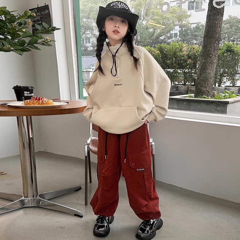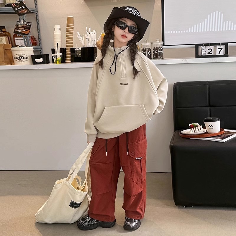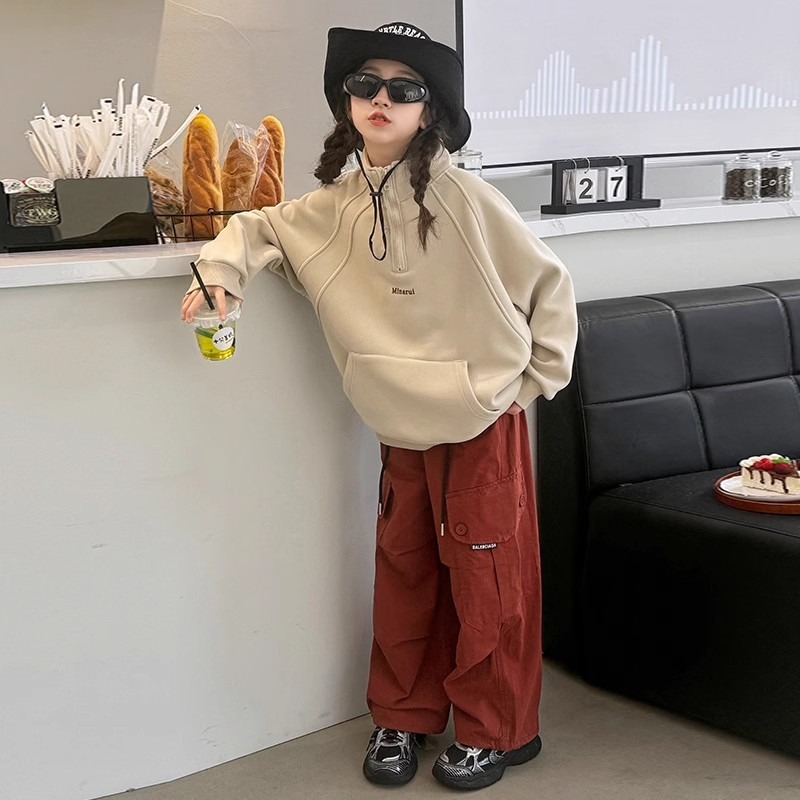 소녀 땀 봄과 가을 2025 새로운 어린이 반 지퍼 목걸이 소녀 가을 느슨한 캐주얼 탑스토어 가기