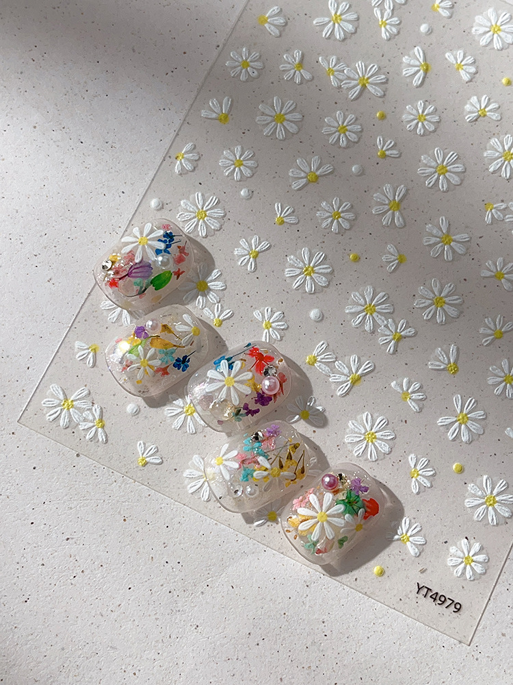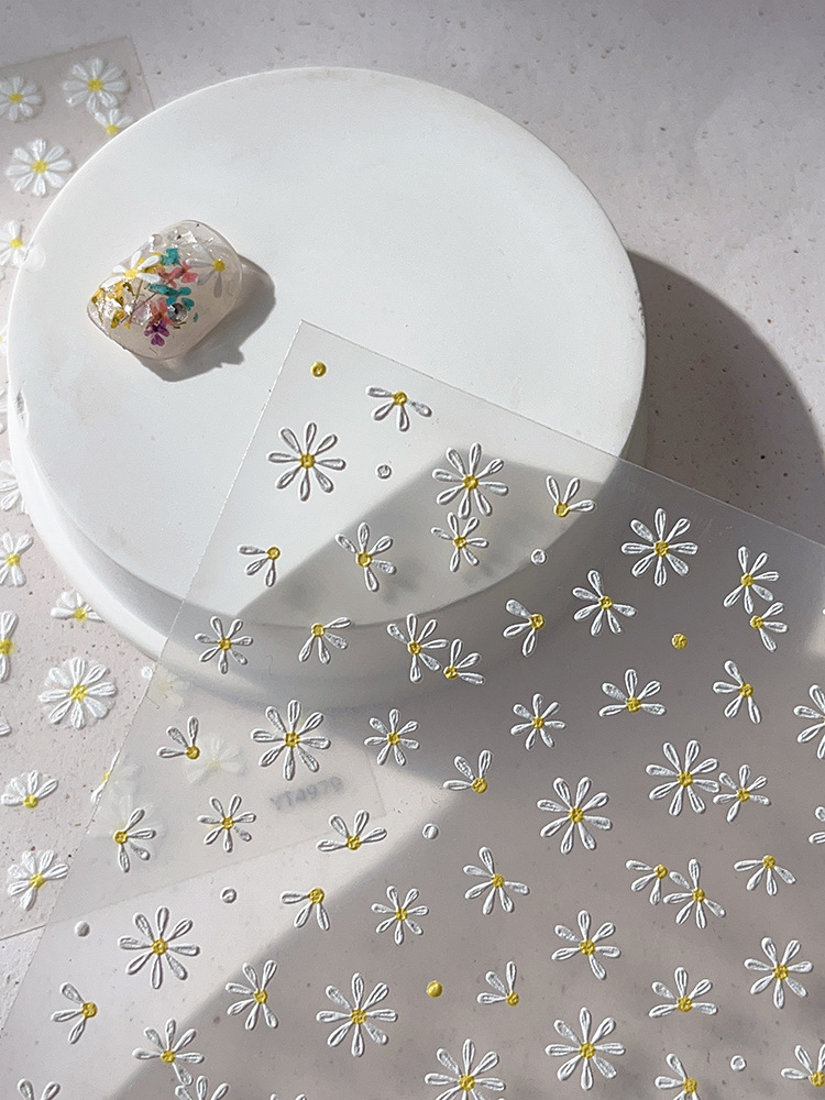 YITU 개미 그림 구호 작은 데이지 네일 아트 스티커 작은 신선한 절묘한 꽃 접착제 네일 장식 스티커 YT4987
