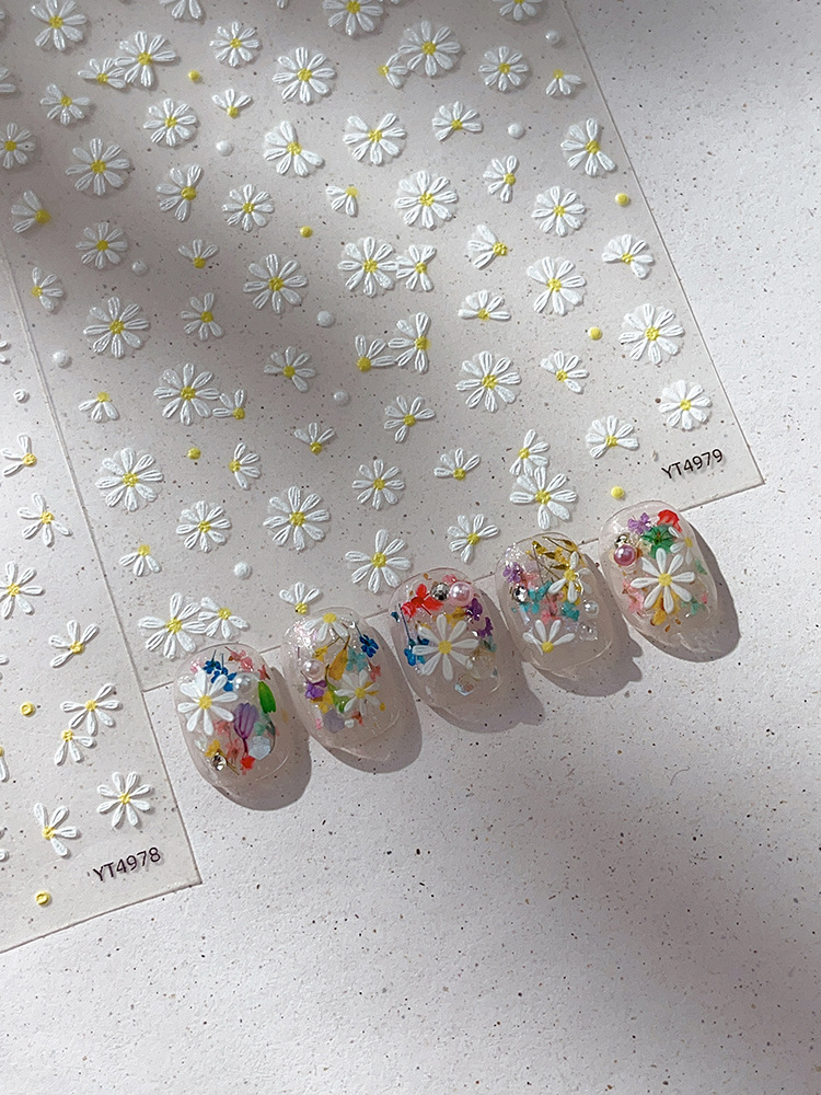 YITU 개미 그림 구호 작은 데이지 네일 아트 스티커 작은 신선한 절묘한 꽃 접착제 네일 장식 스티커 YT4987스토어 가기