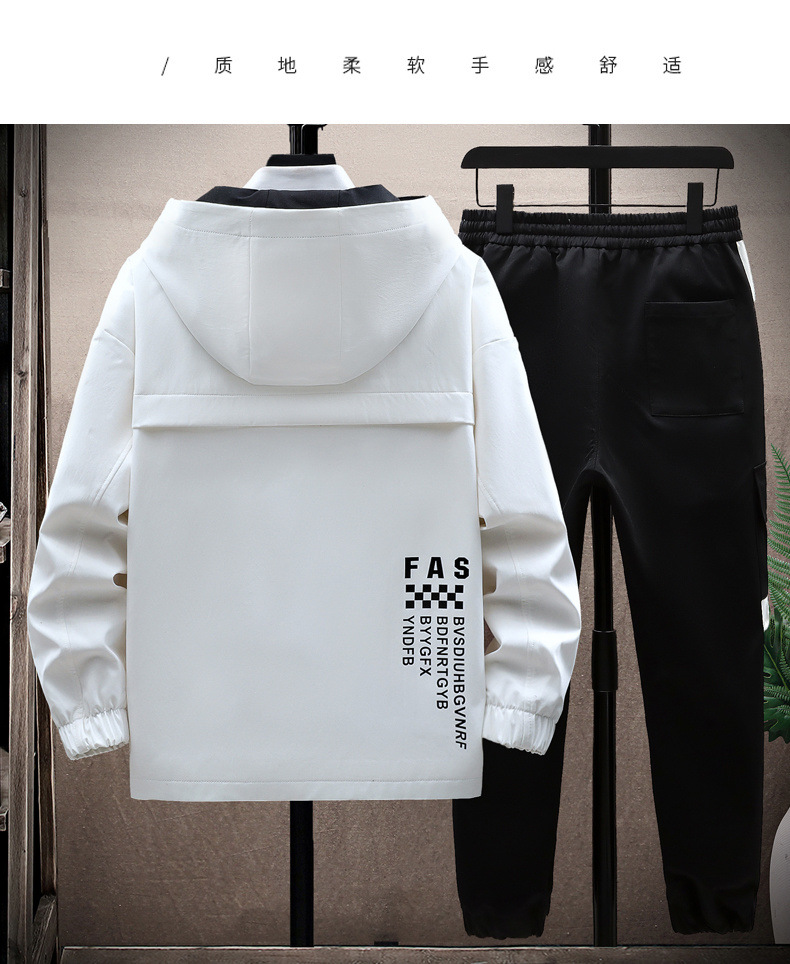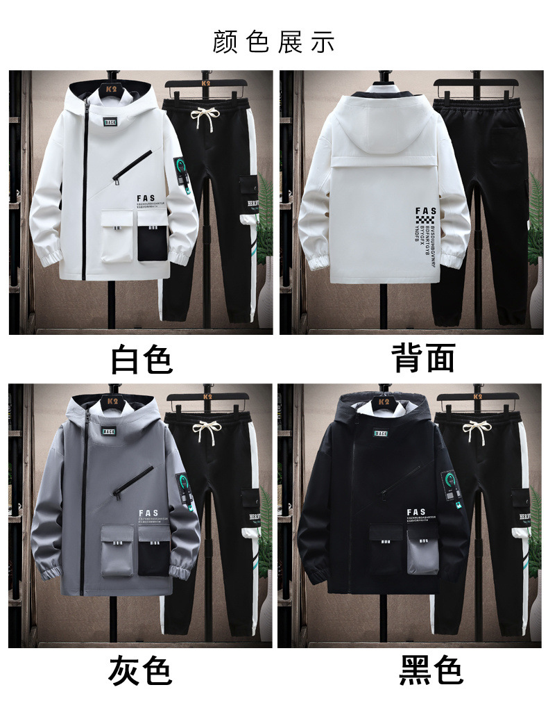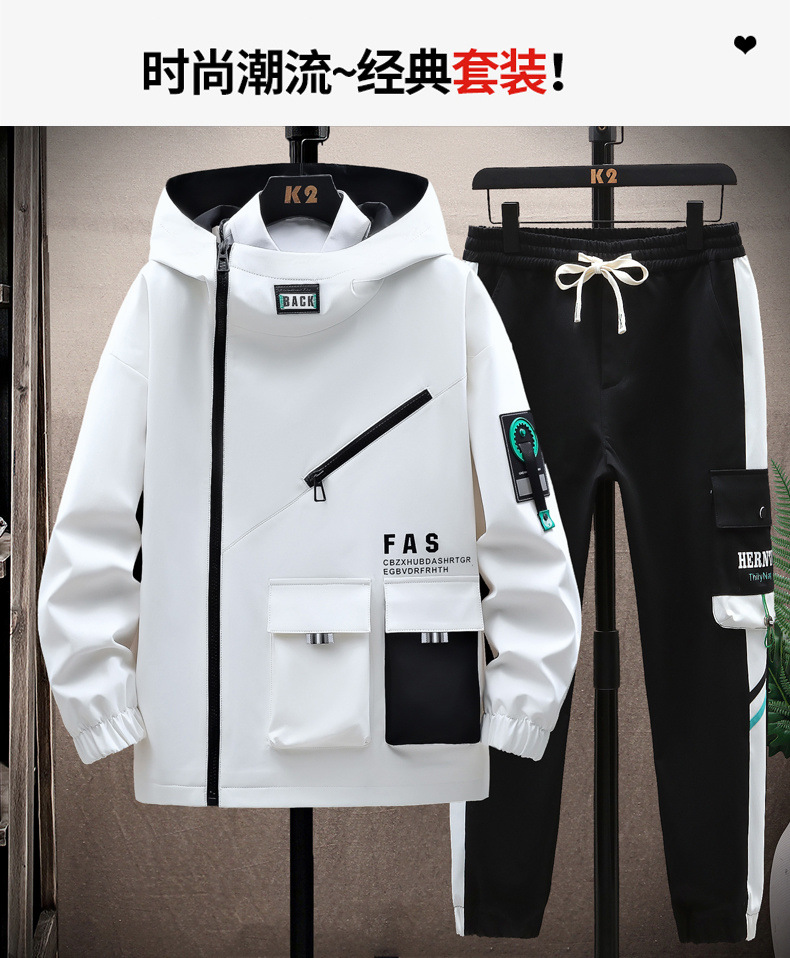 세련된 재킷 남성 봄 후드 자켓 세트 십대 중학교 학생 유행 브랜드 캐주얼 스포츠 투피스 세트