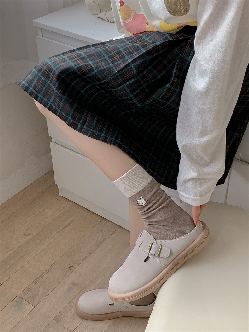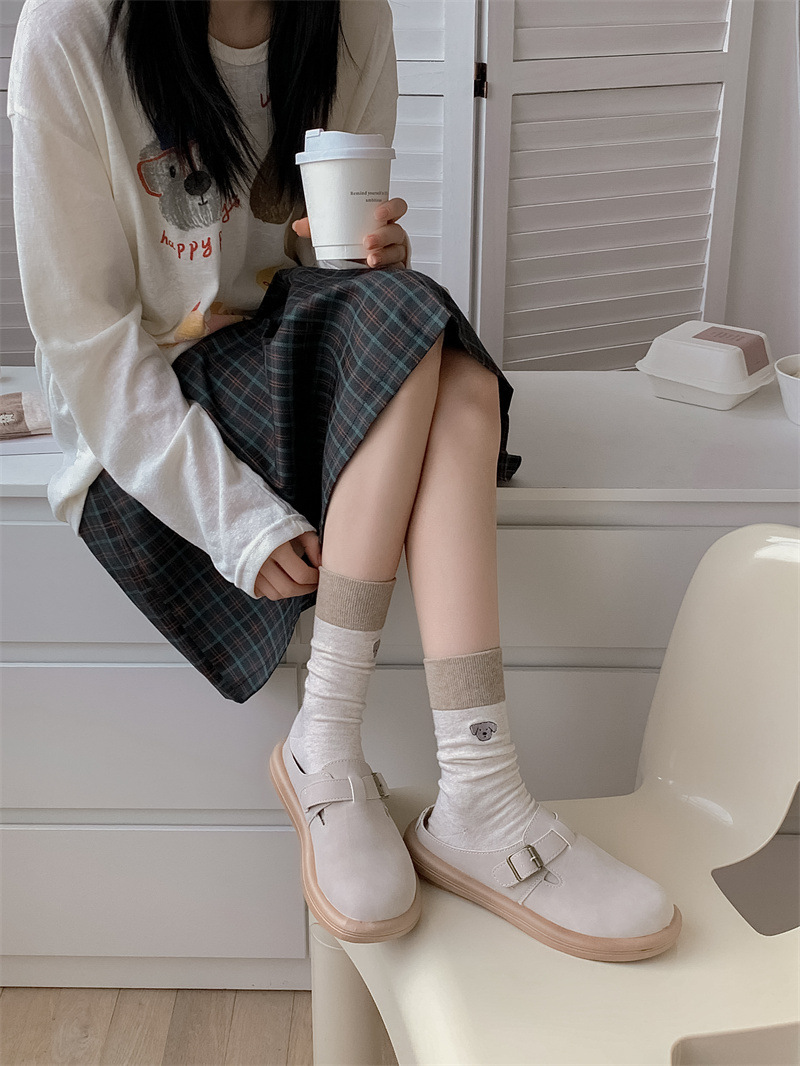 봄과 여름 새로운 학술 스타일 대조 컬러 양말 여성 한국 스타일 자수 만화 강아지 미드 사이즈 양말 뼈없는 캐주얼 코튼 양말스토어 가기
