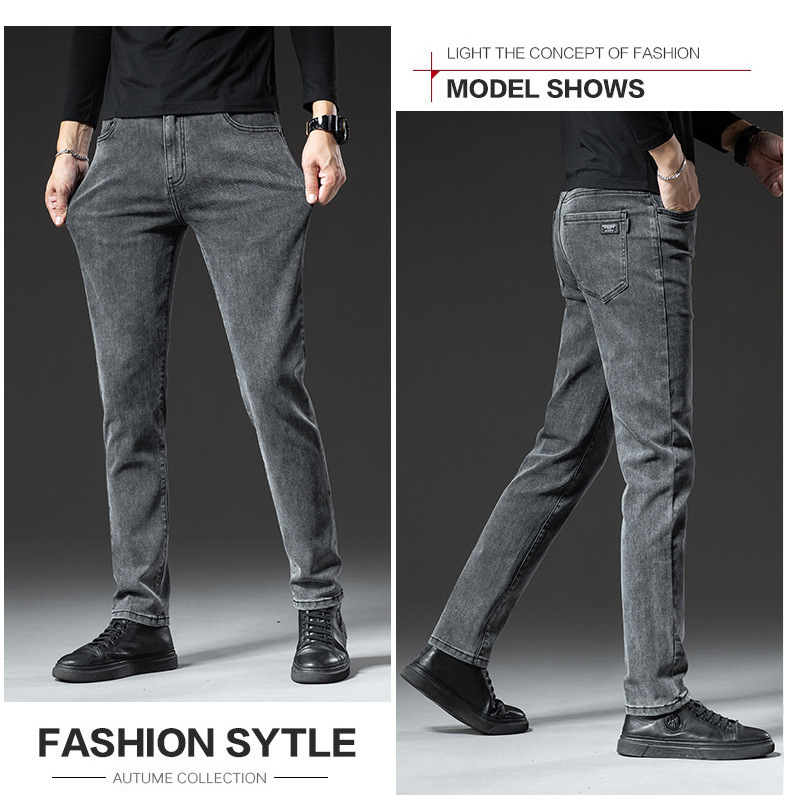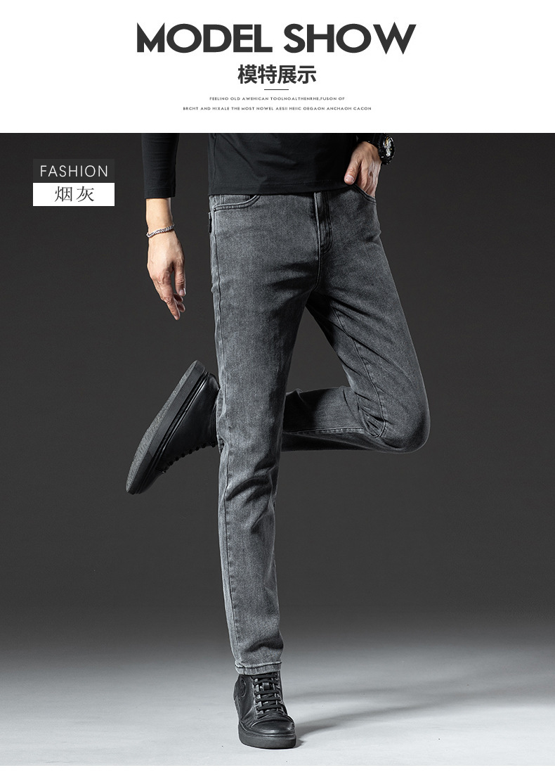 봄과 여름 청바지 남자 슬림 핏 스트레이트 스트레치 2024 새로운 패션 올매치 하이 엔드 폭발 캐주얼 바지 남자 바지스토어 가기