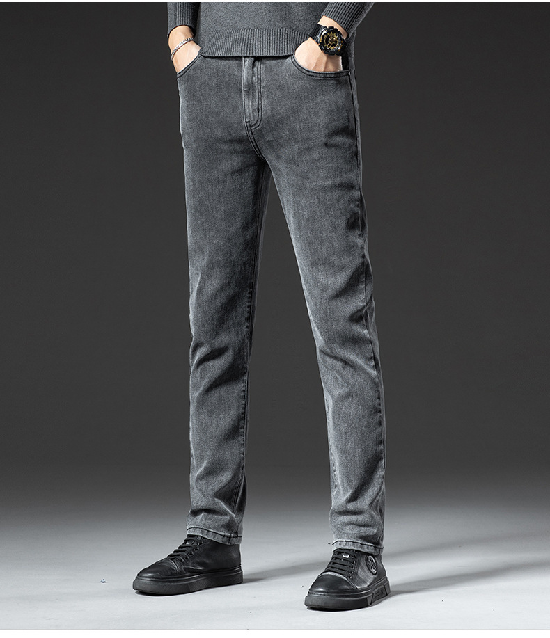 봄과 여름 청바지 남자 슬림 핏 스트레이트 스트레치 2024 새로운 패션 올매치 하이 엔드 폭발 캐주얼 바지 남자 바지