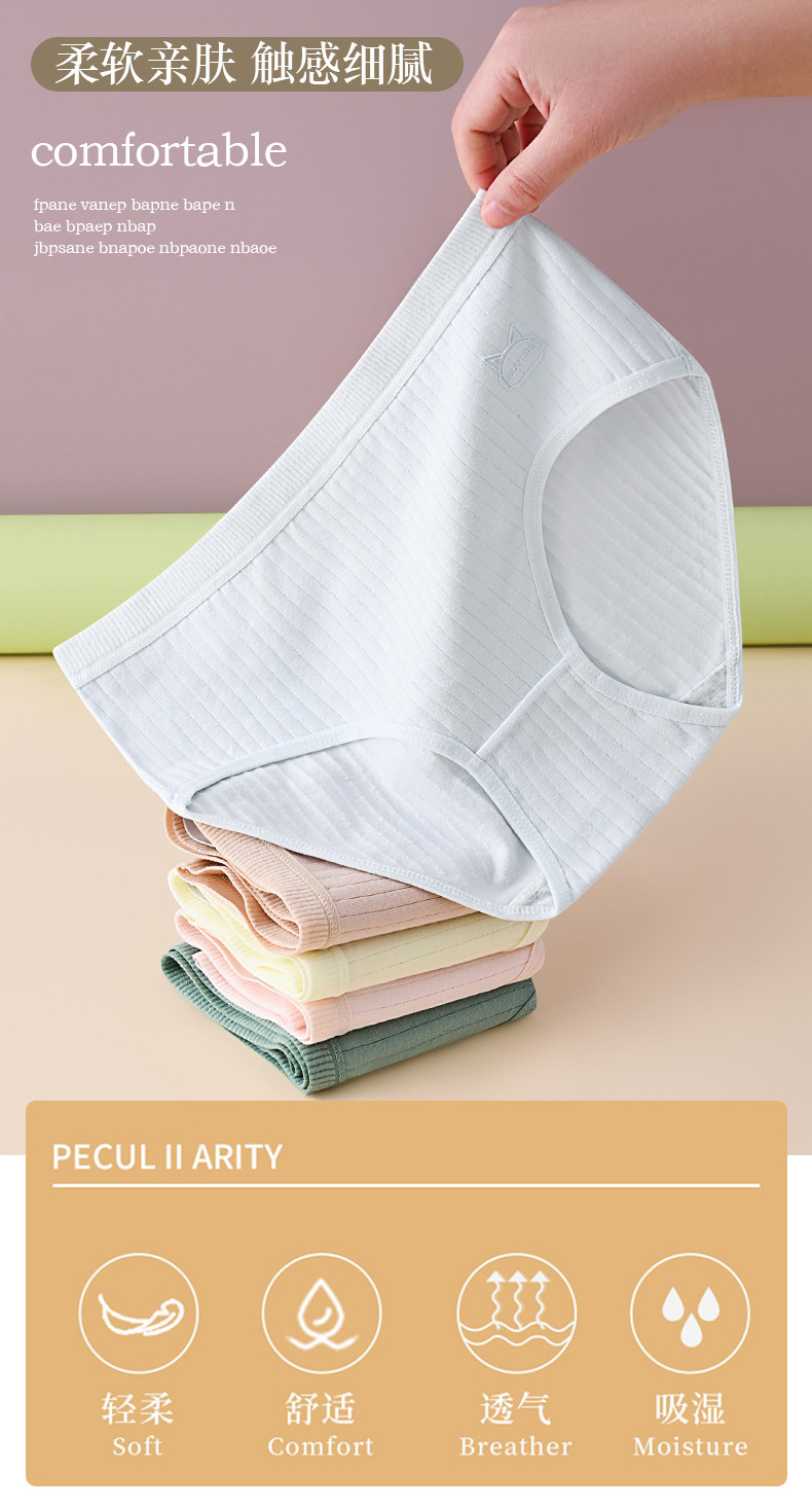 국경 간 속옷 여성의 통기성 더블 레이어 크로트 일본 소녀 학생 달콤한 귀여운 단색 얇은 중간 허리 브리프스토어 가기