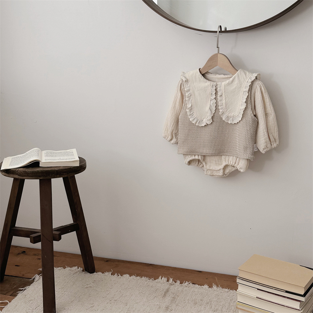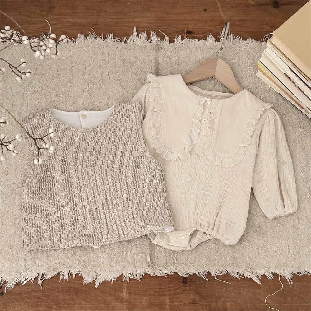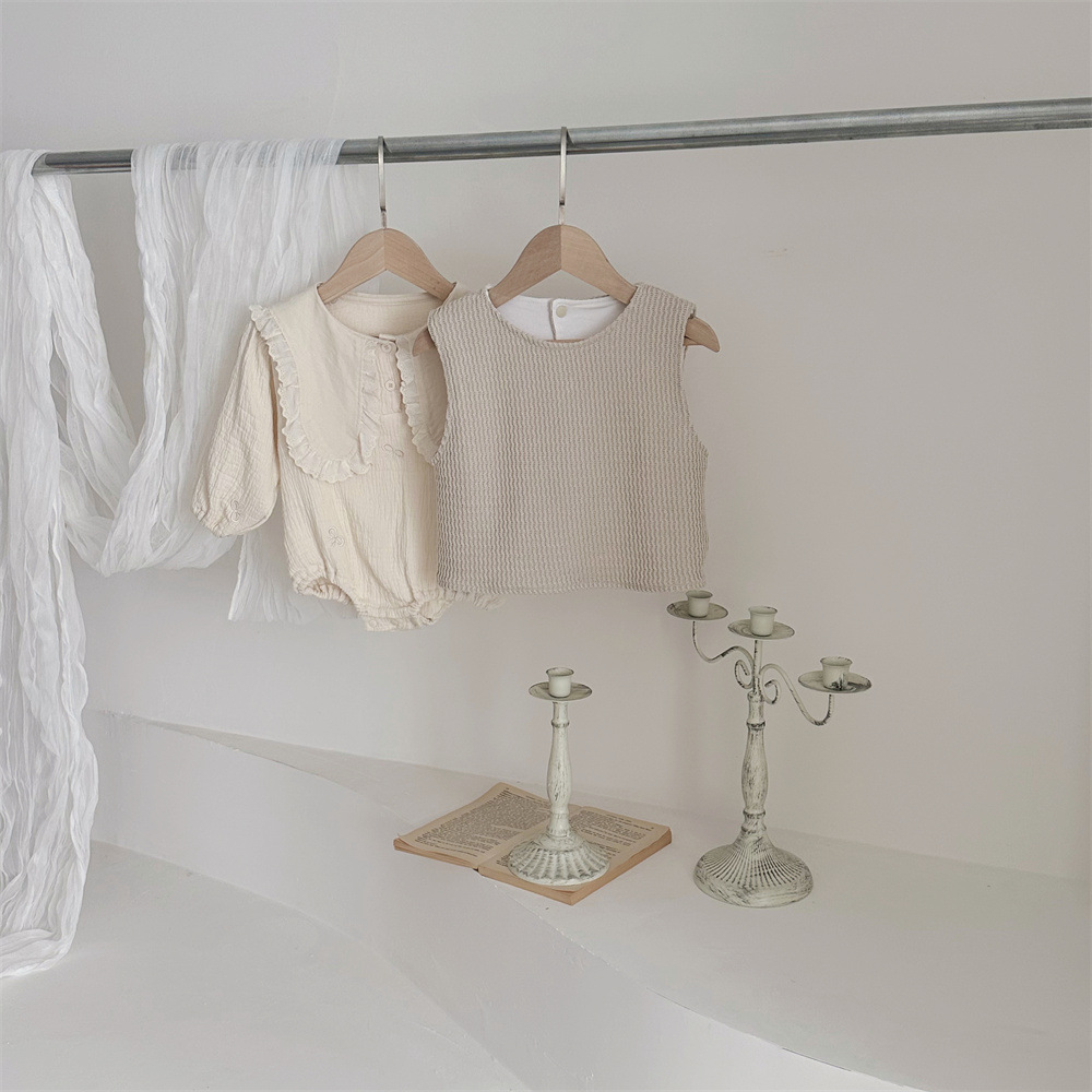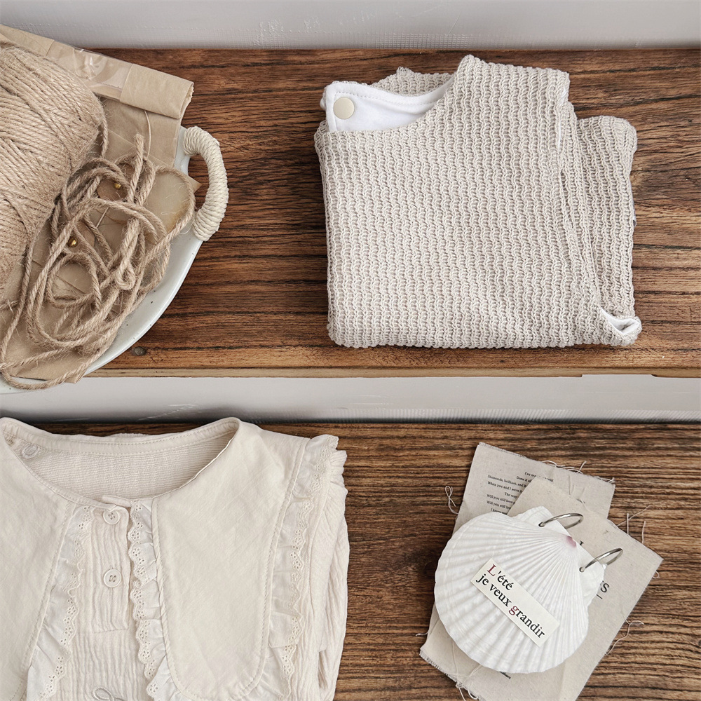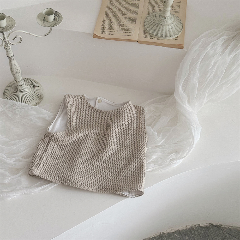 INS 봄과 가을 유아 꼬인 니트 민소매 조끼 소년 소녀 아기 더블 민소매 블라우스