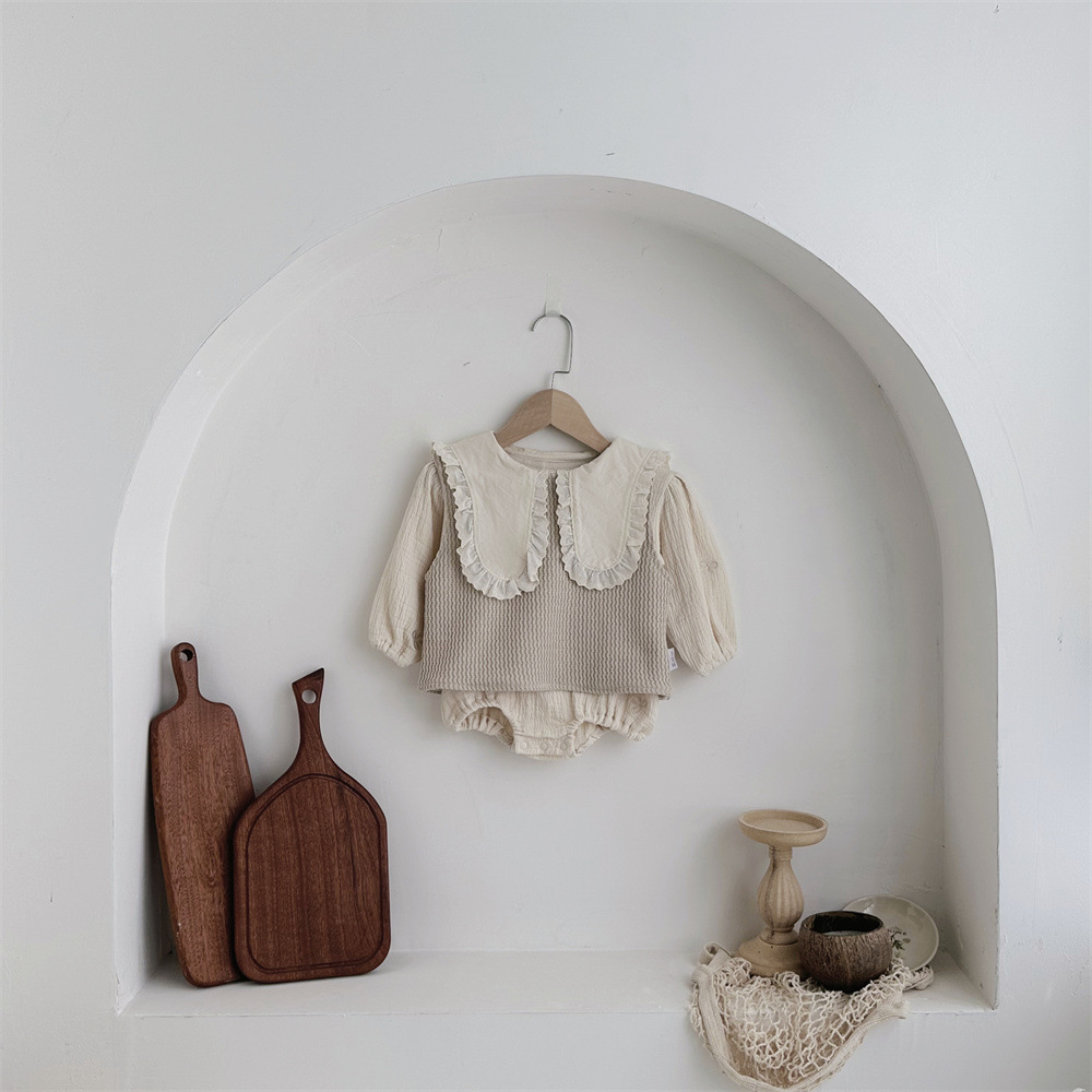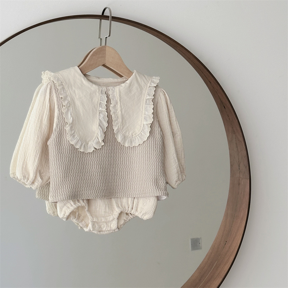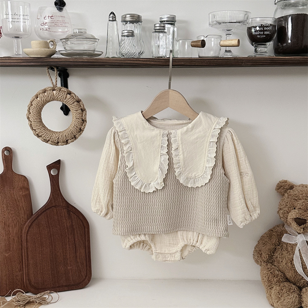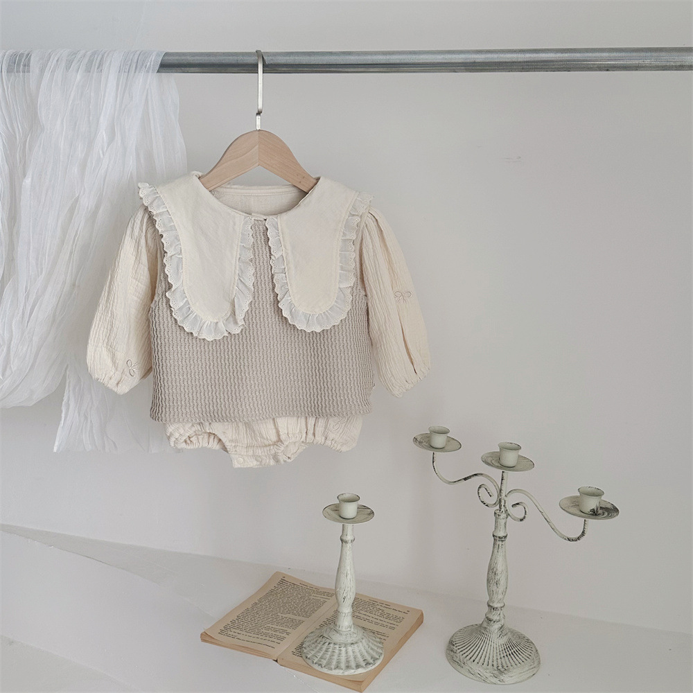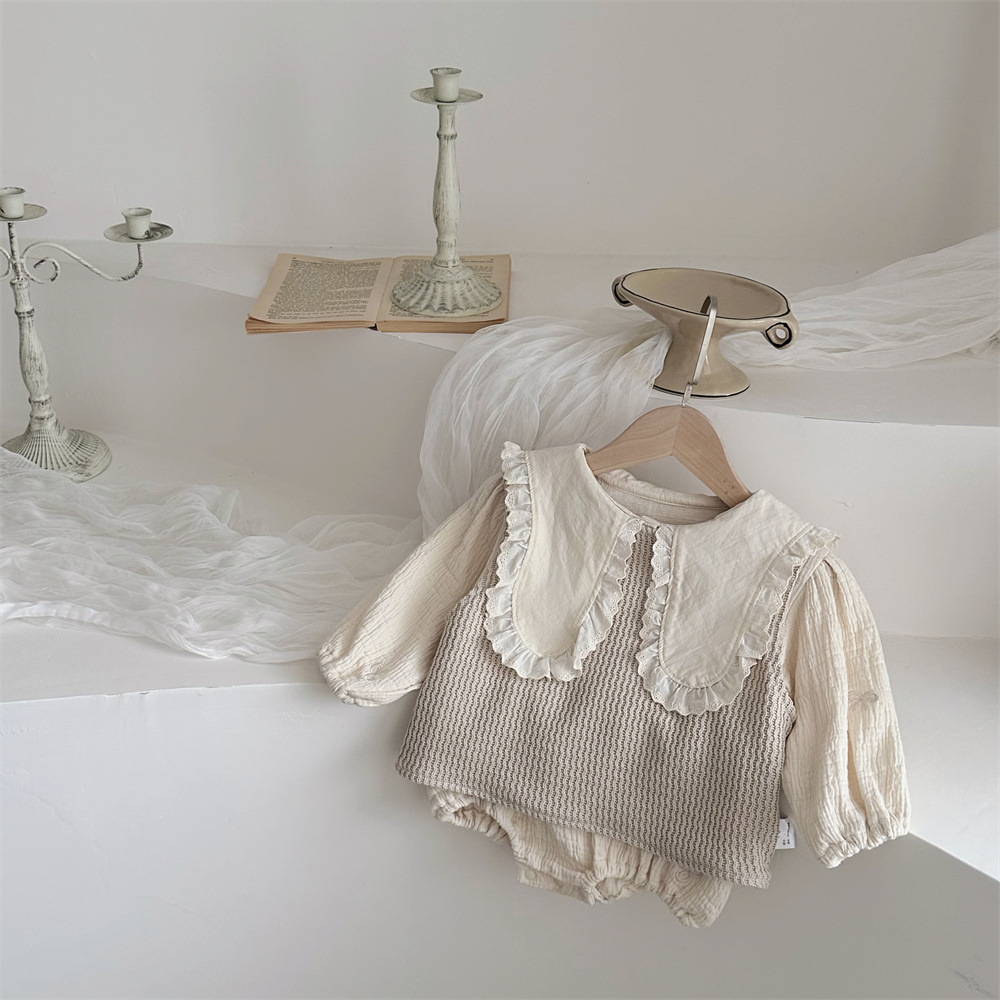 INS 봄과 가을 유아 꼬인 니트 민소매 조끼 소년 소녀 아기 더블 민소매 블라우스