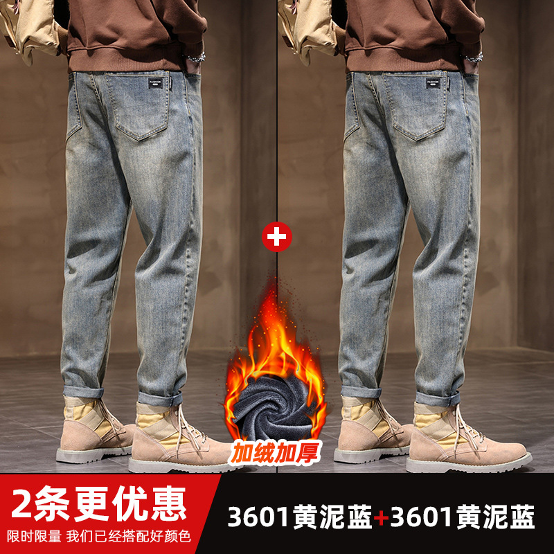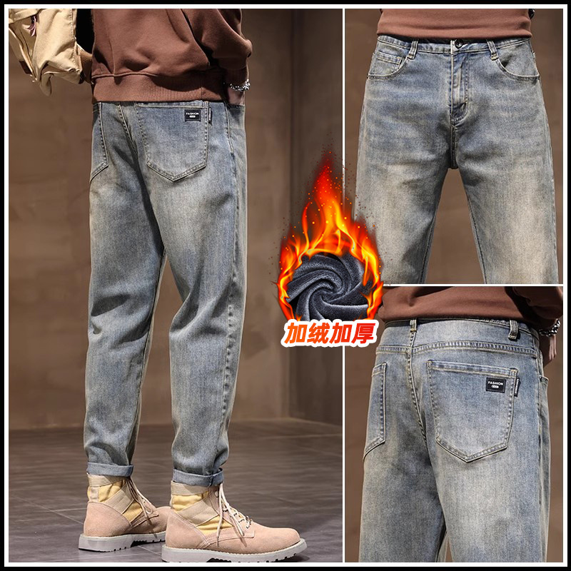 남자 캐주얼 청바지 봄과 가을 느슨한 스트레이트 바지 2024 가을과 겨울 새로운 도착 레트로 가을 바지 겨울