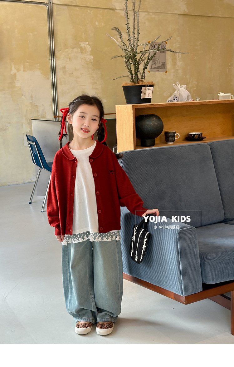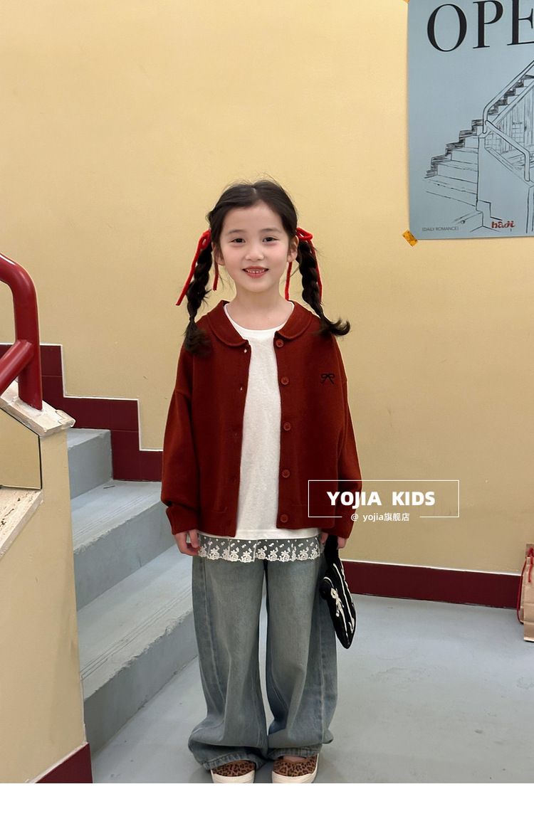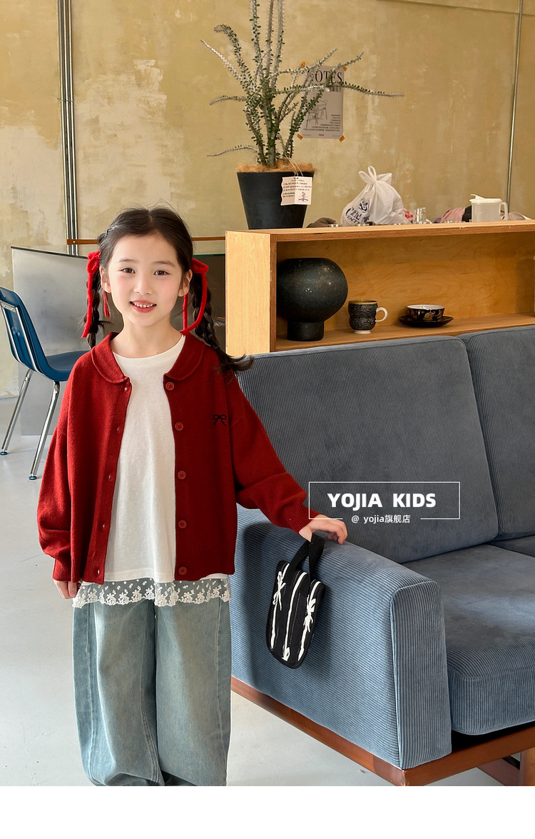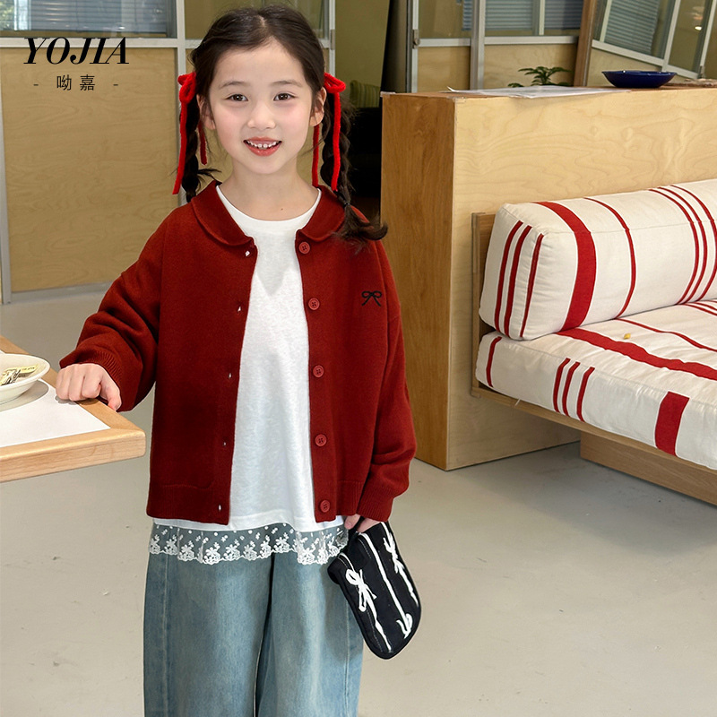 YOJIA 소녀 스웨터 봄 2025 새로운 스타일 유행 소녀 니트 셔츠 어린이 카디건 봄 착용스토어 가기
