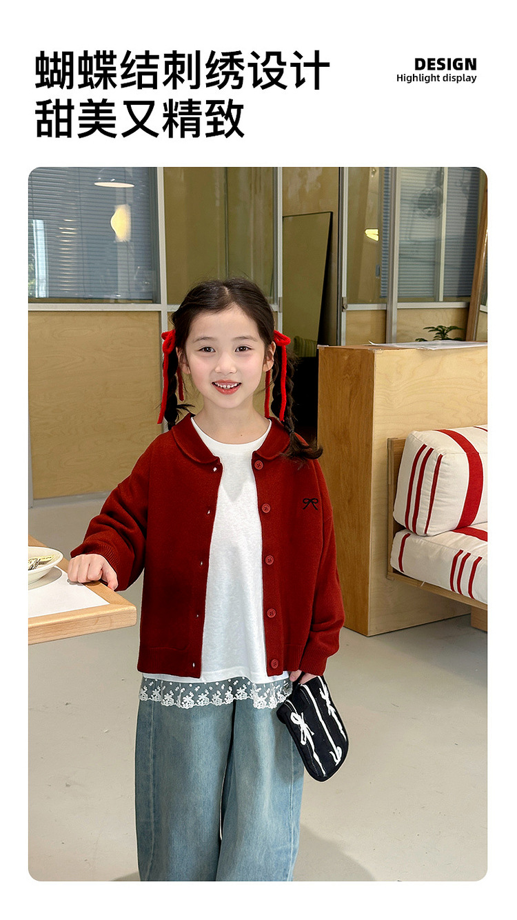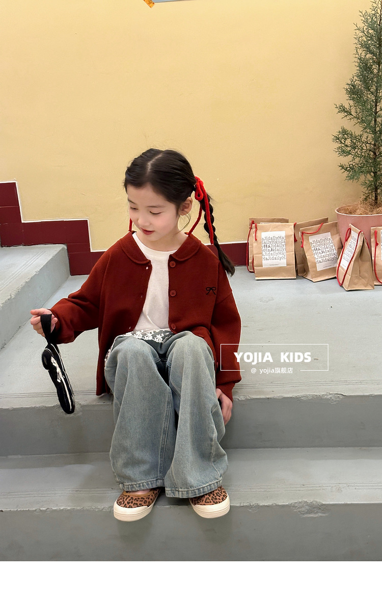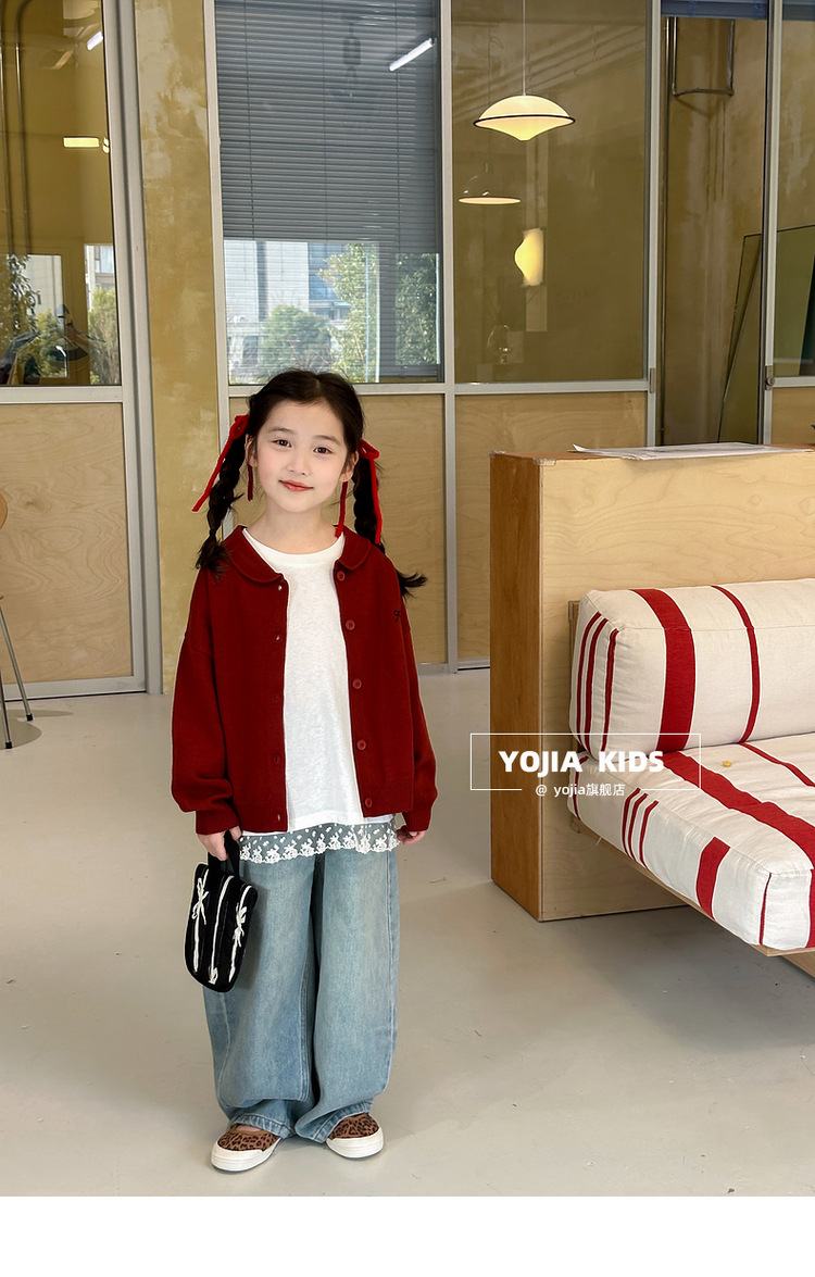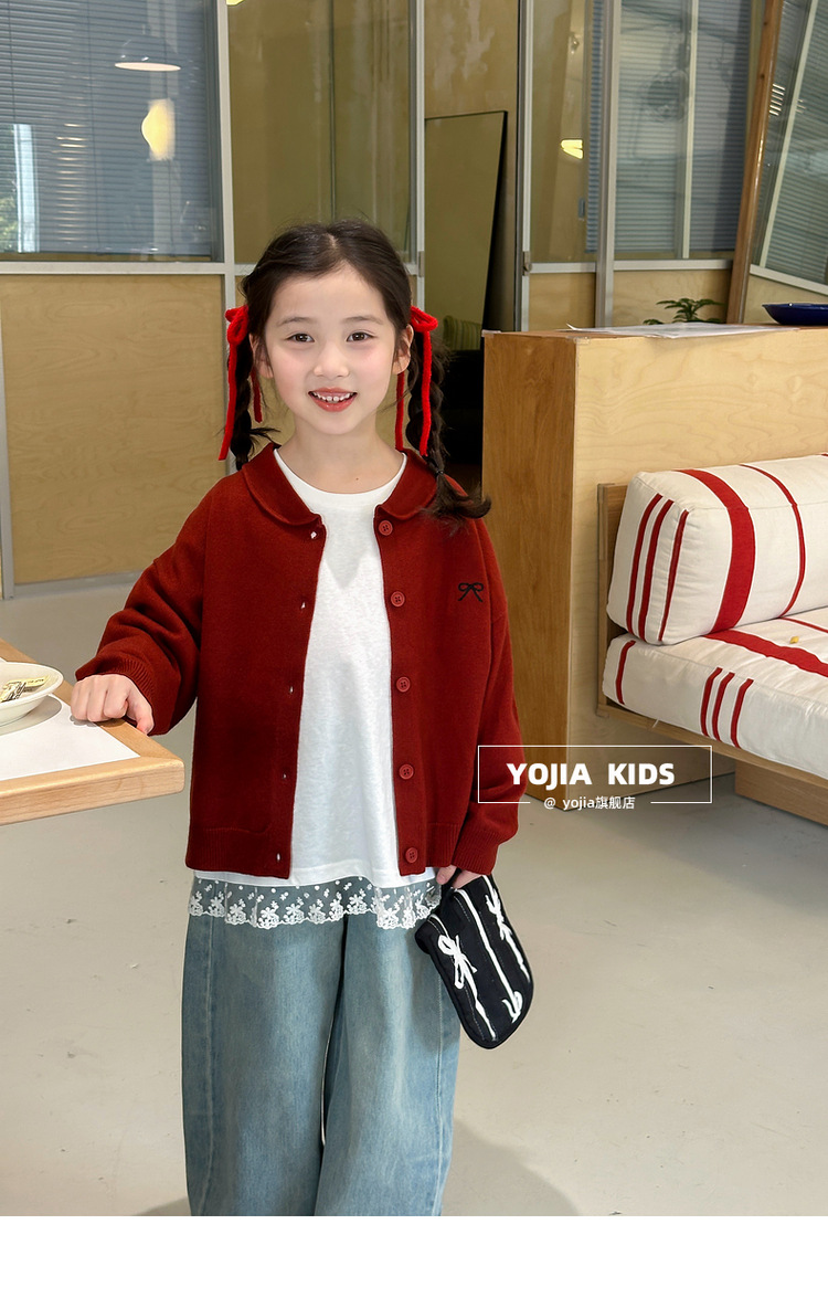 YOJIA 소녀 스웨터 봄 2025 새로운 스타일 유행 소녀 니트 셔츠 어린이 카디건 봄 착용스토어 가기