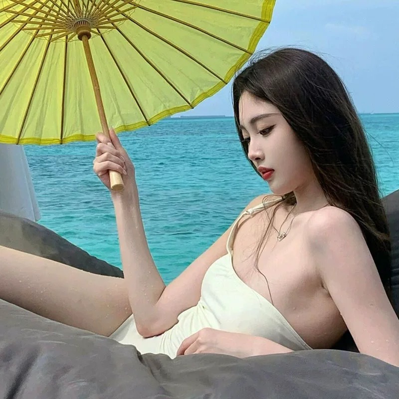 2025 새로운 퓨어 화이트 슬링 수영복 여성용 섹시한 핫 걸 레트로 작은 가슴 모임 온천 휴가스토어 가기