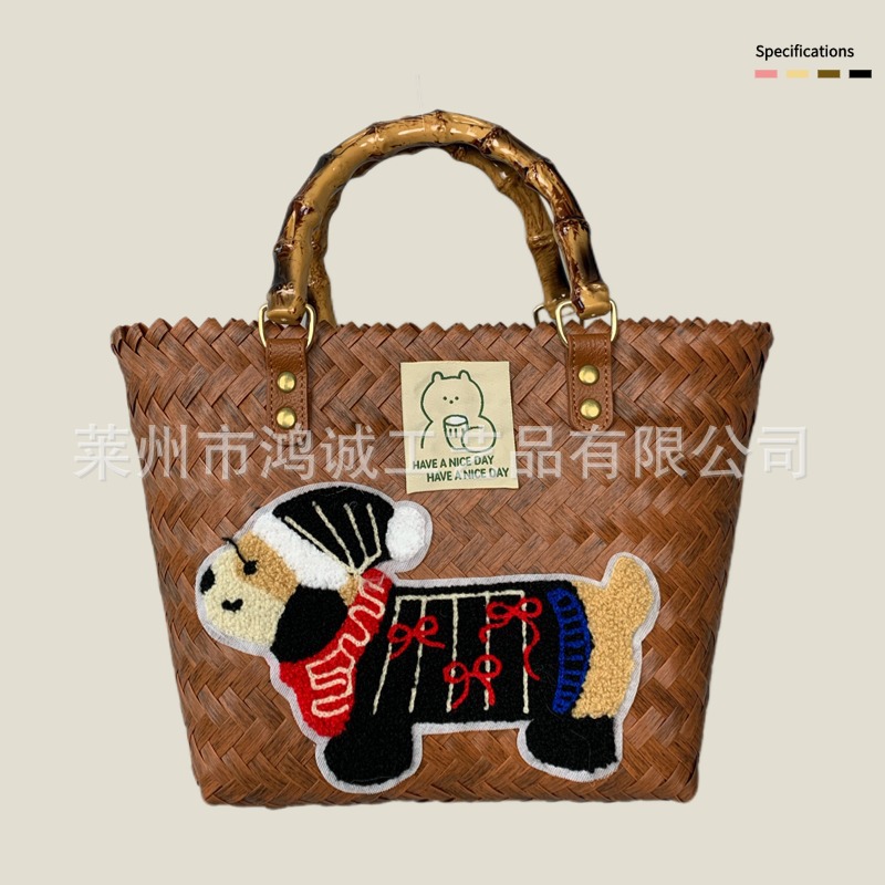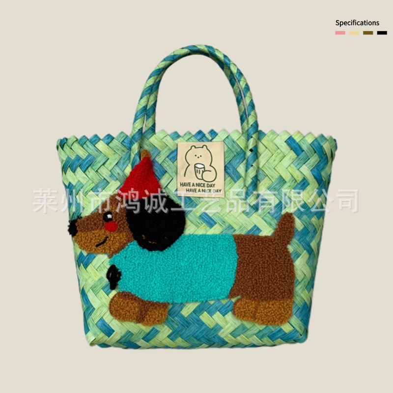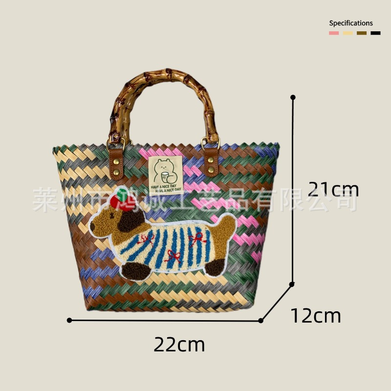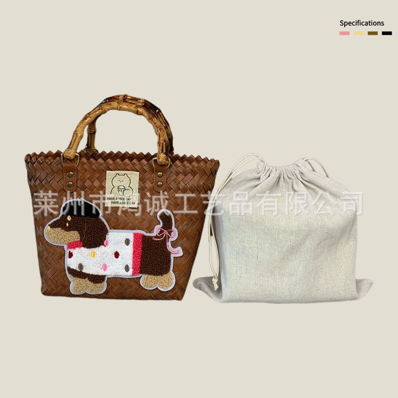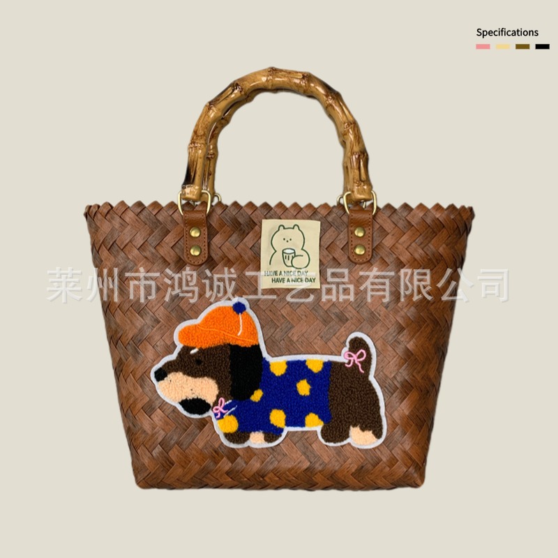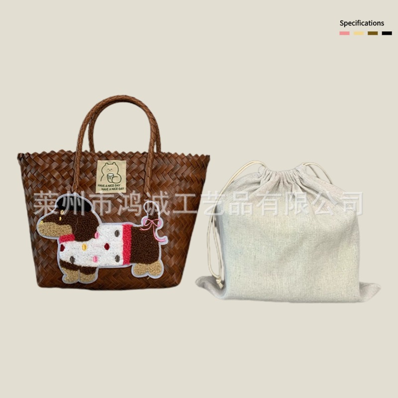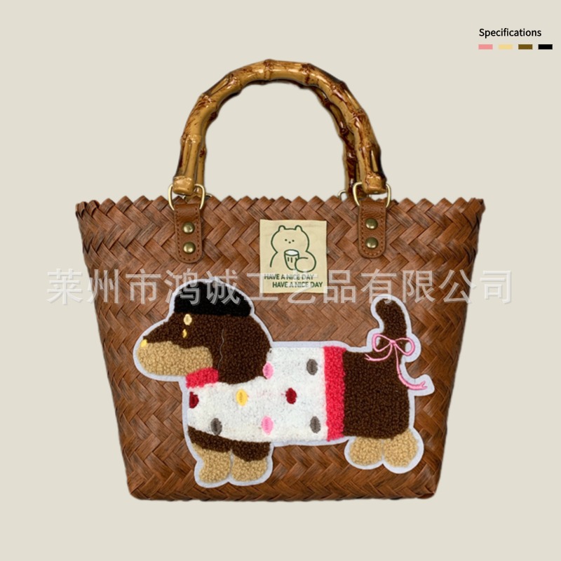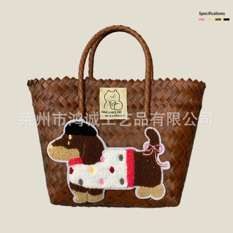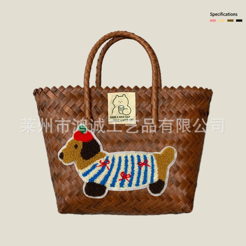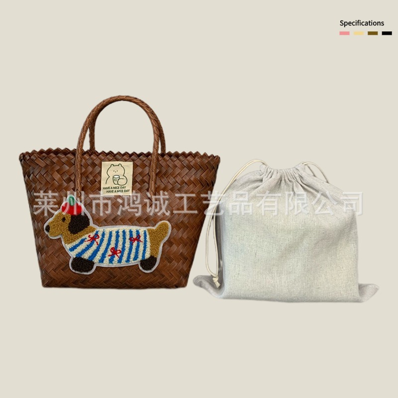 대용량 닥스 훈트 개 수제 짠 가방 야채 바구니 등나무 핸드백 작업 잡화 작은 가방 피크닉 여성 가방