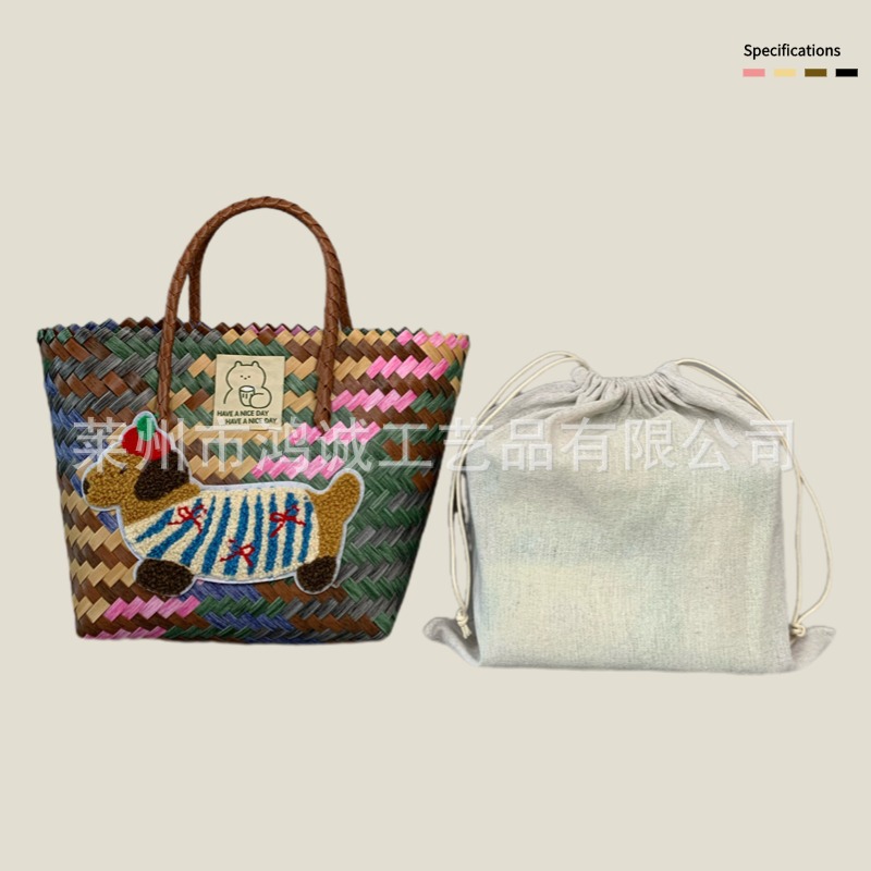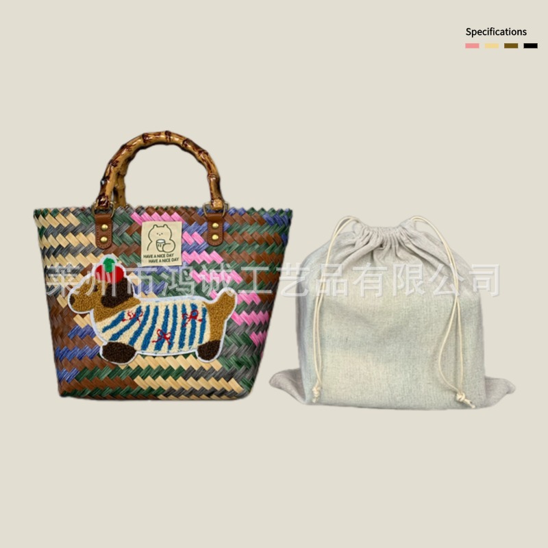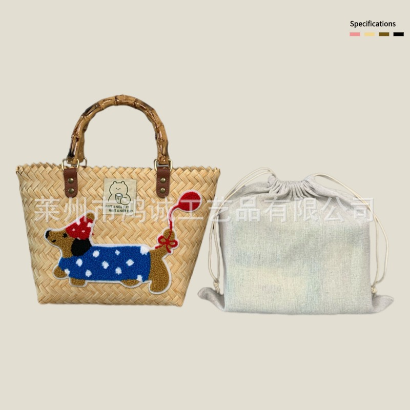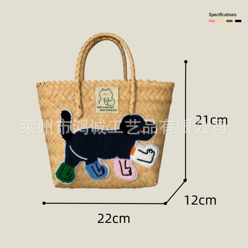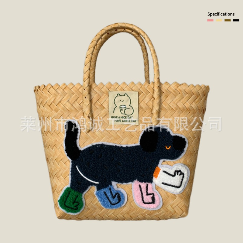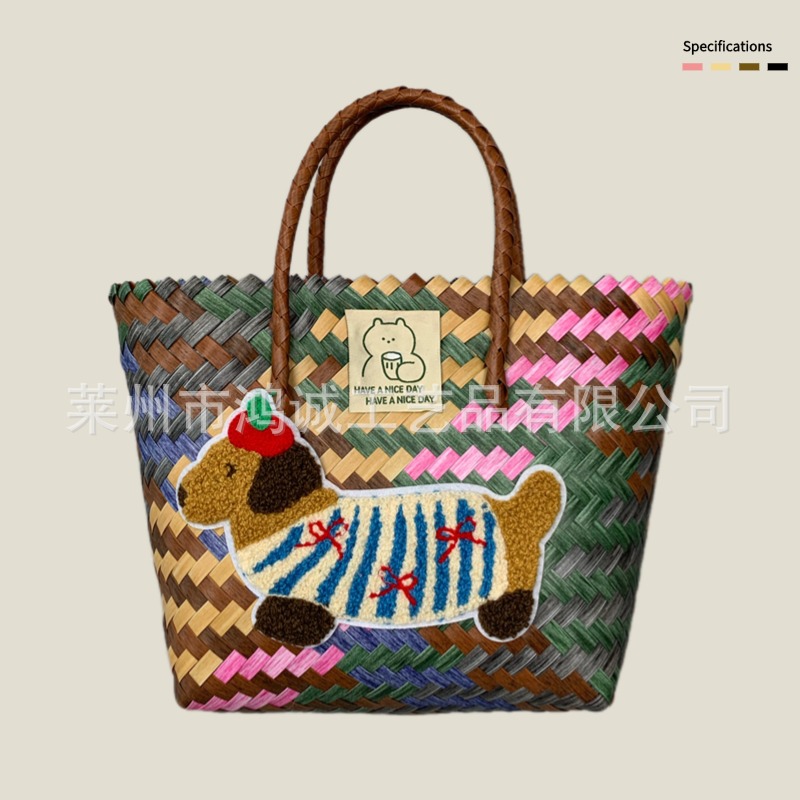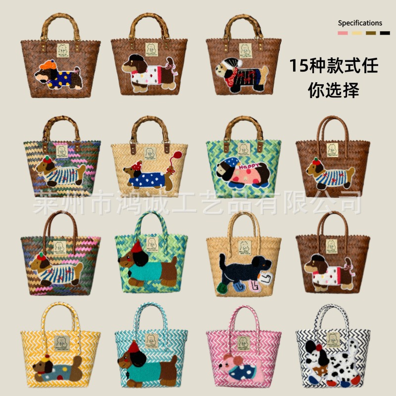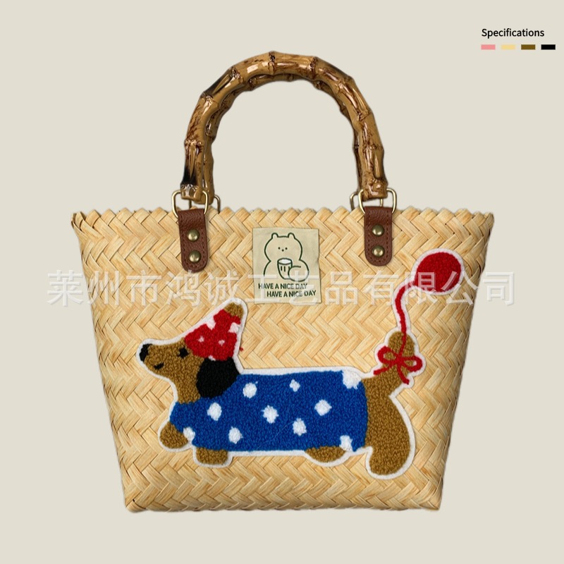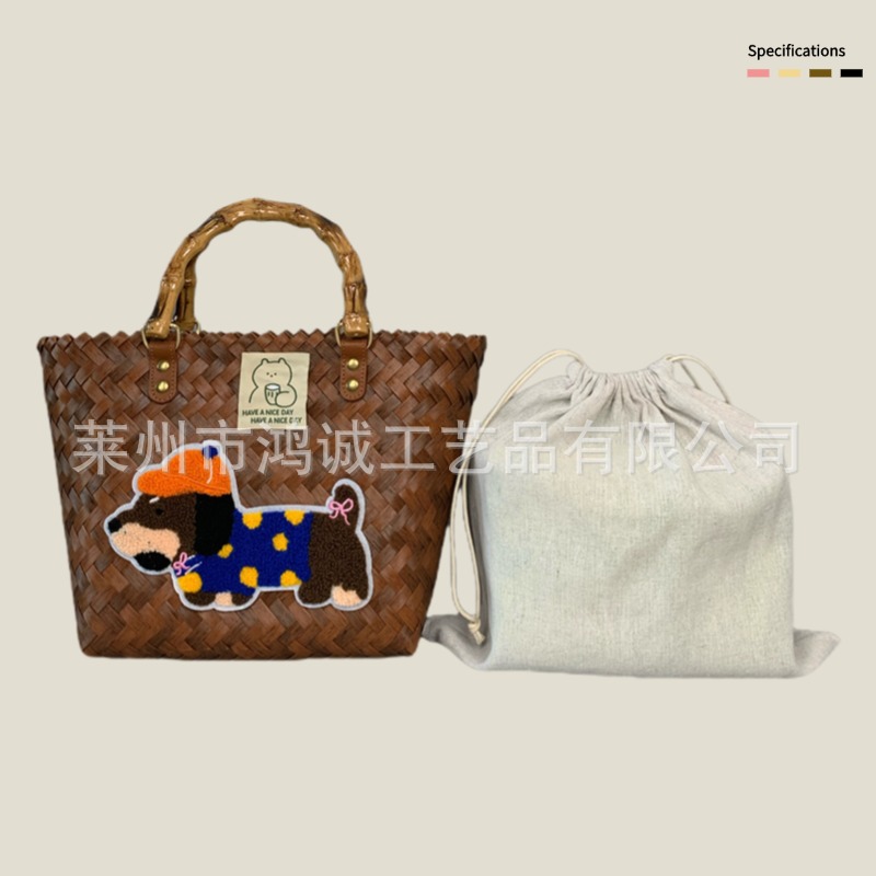 대용량 닥스 훈트 개 수제 짠 가방 야채 바구니 등나무 핸드백 작업 잡화 작은 가방 피크닉 여성 가방