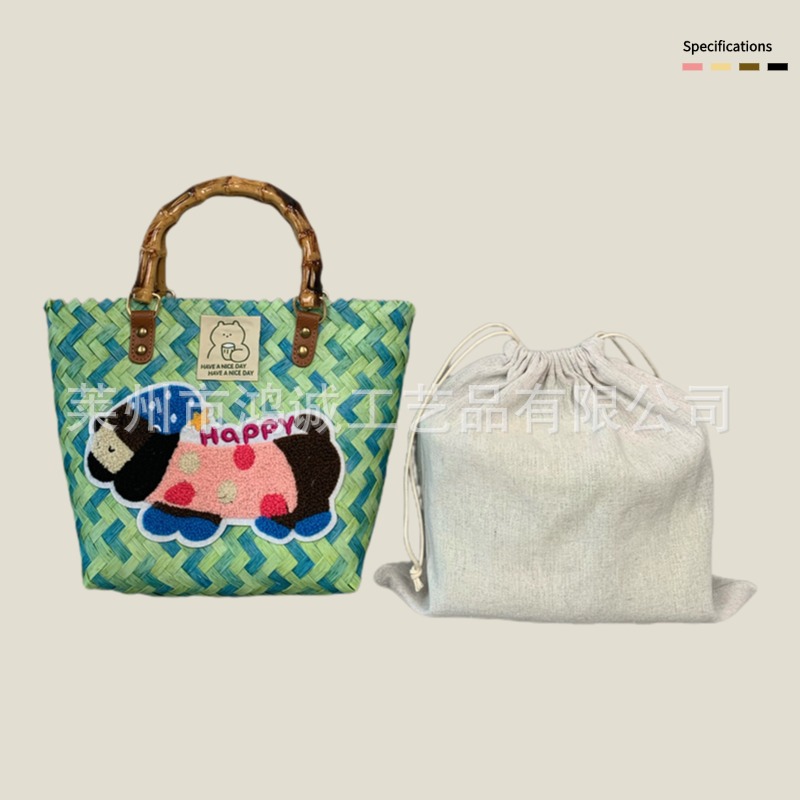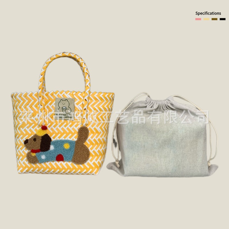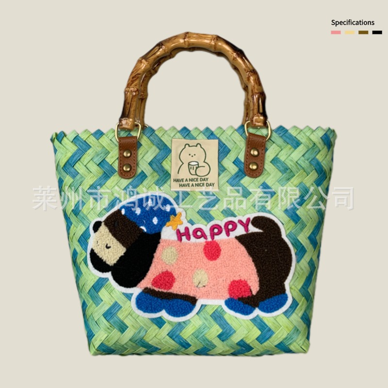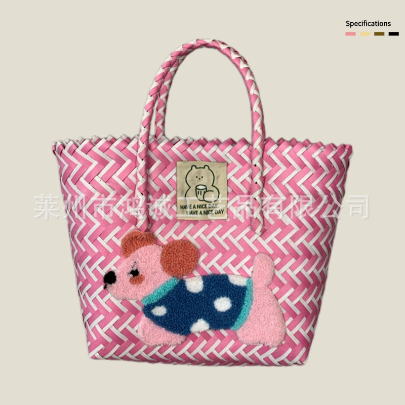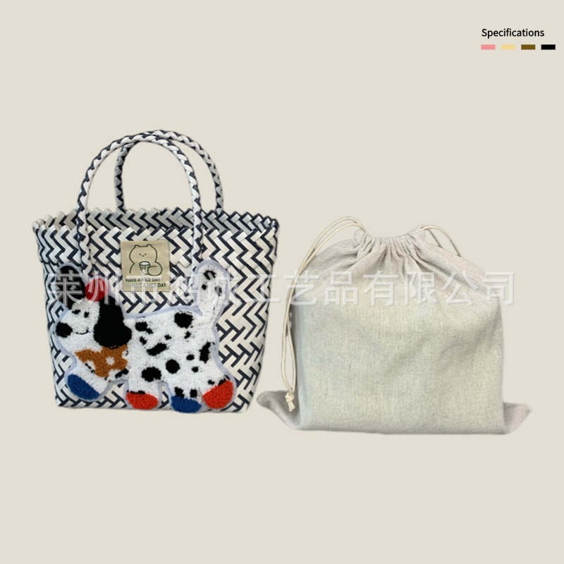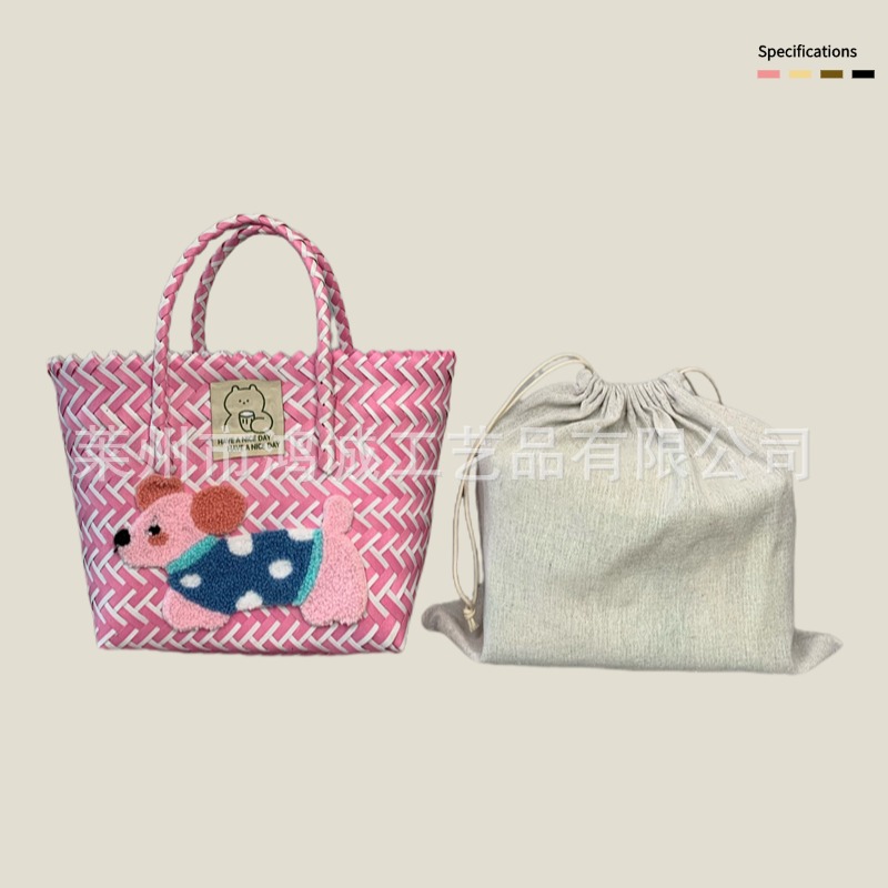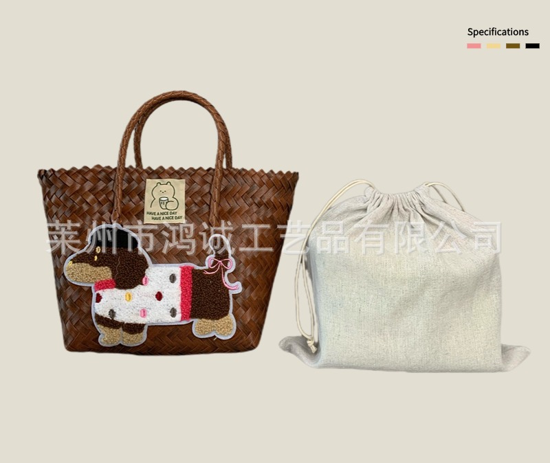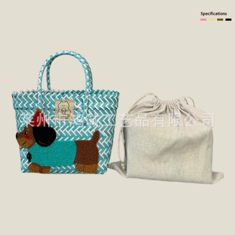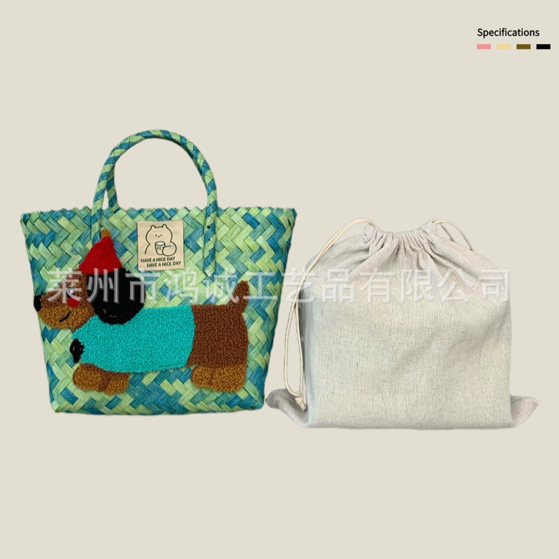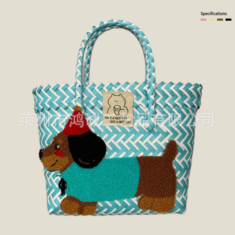 대용량 닥스 훈트 개 수제 짠 가방 야채 바구니 등나무 핸드백 작업 잡화 작은 가방 피크닉 여성 가방