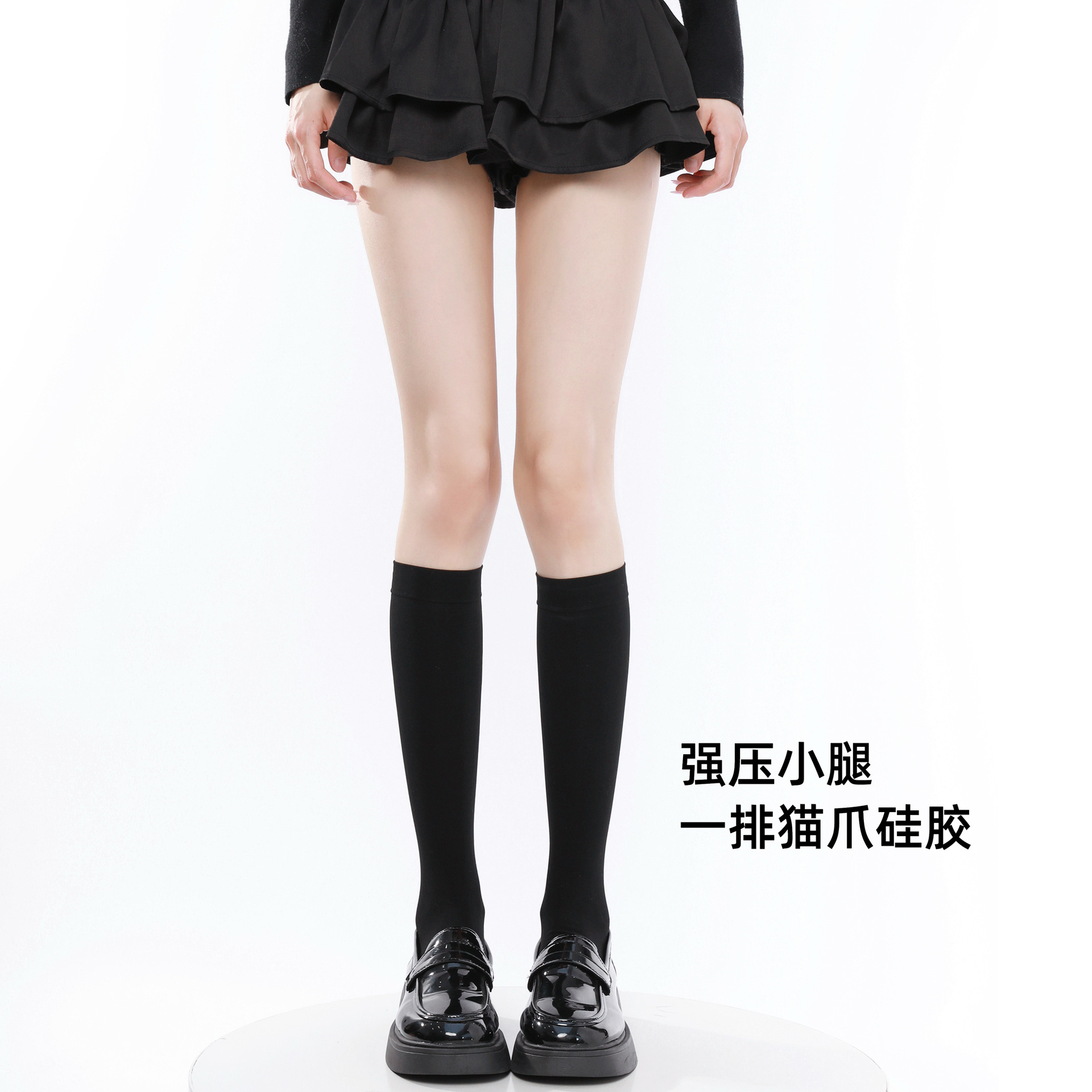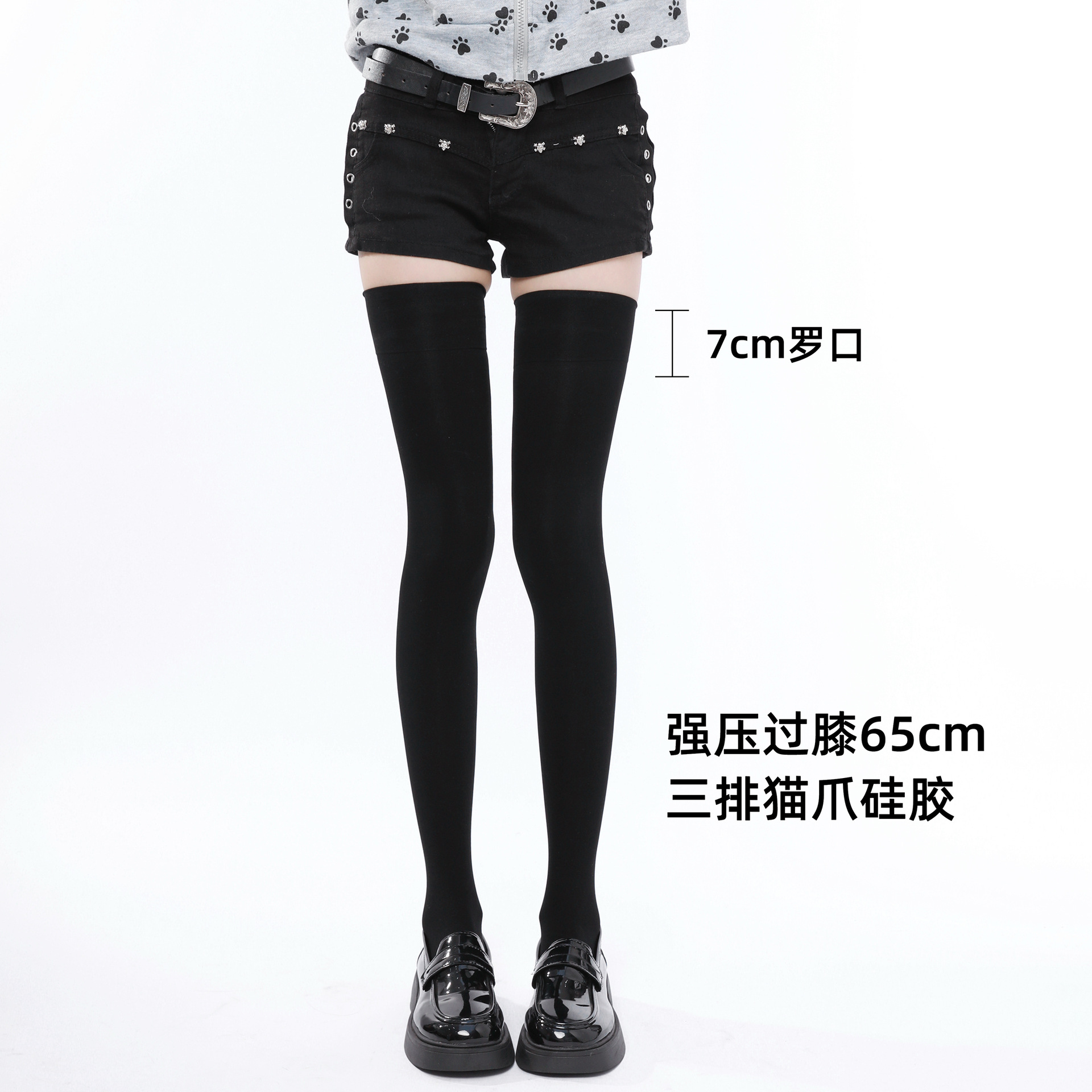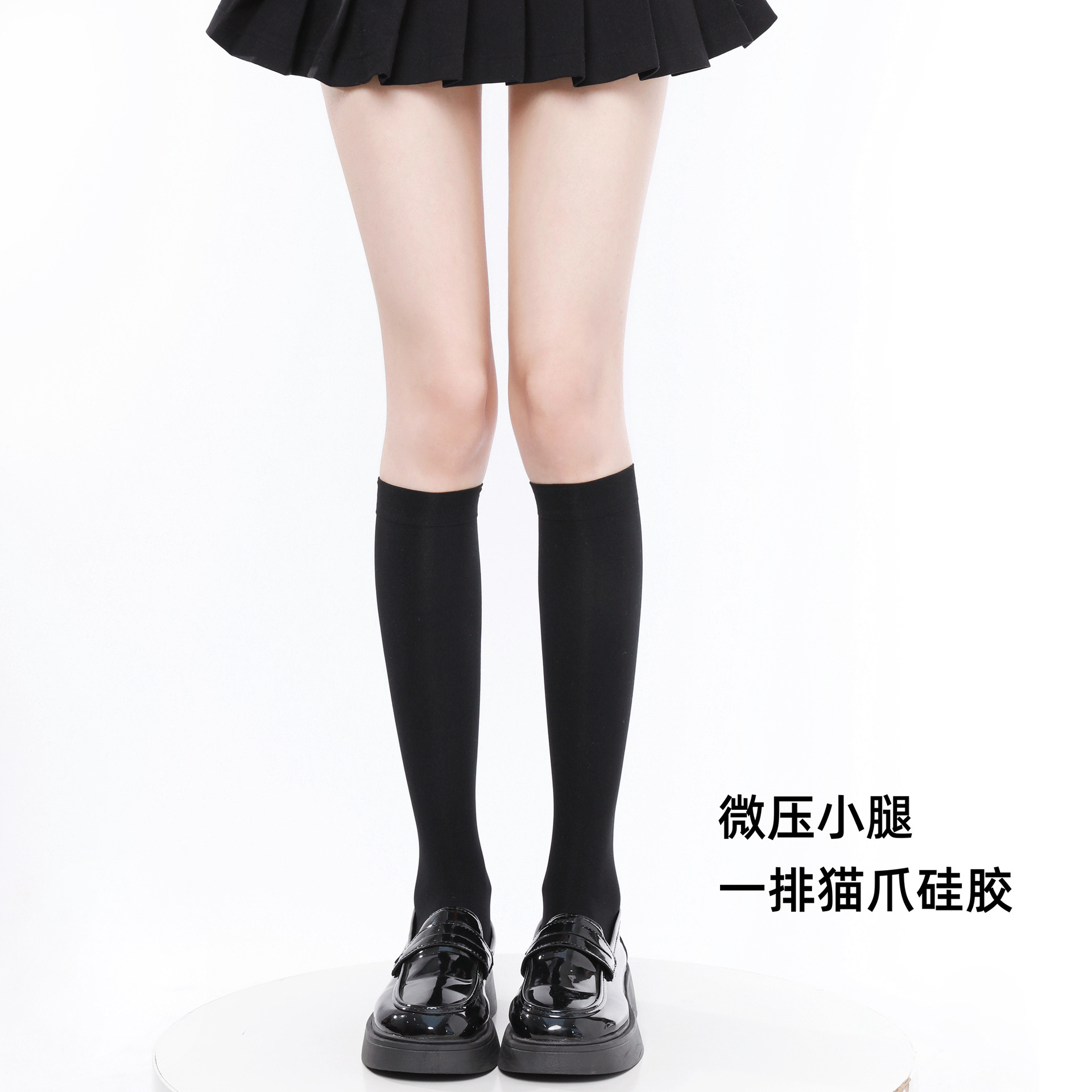 • 검정/미세 압박 종아리 스타킹 [40cm, 고양이 발바닥 모양 실리콘 1겹]