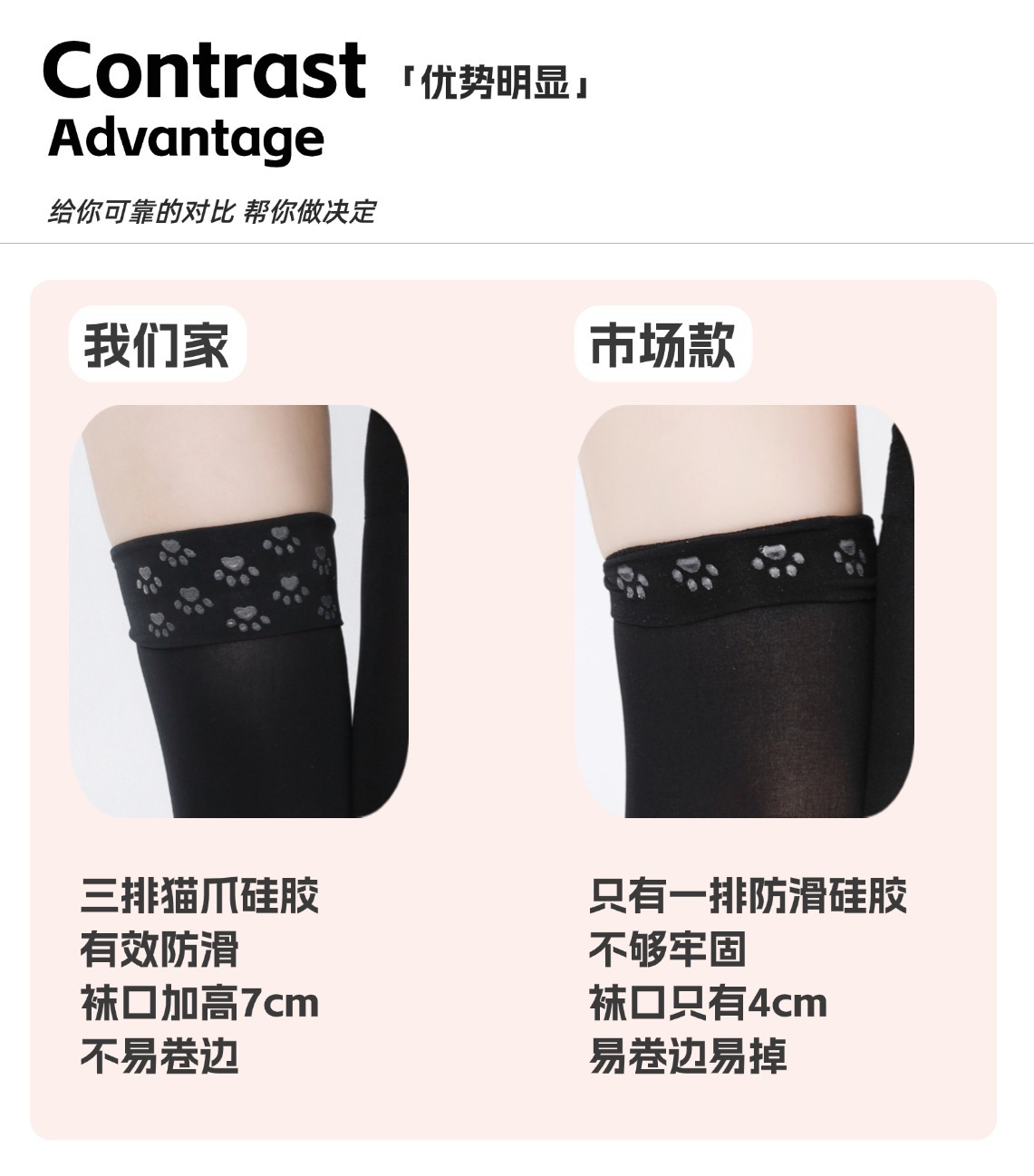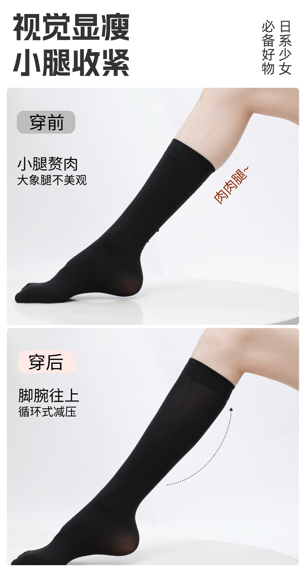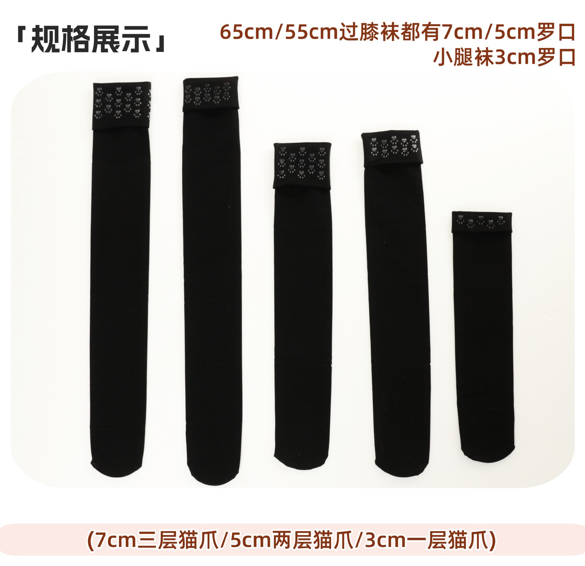 • 검정/미세 압박 종아리 스타킹 [40cm, 고양이 발바닥 모양 실리콘 1겹]
