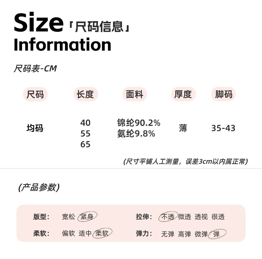 • 밀크화이트/투명송아지양말 [40cm, 150-175cm]