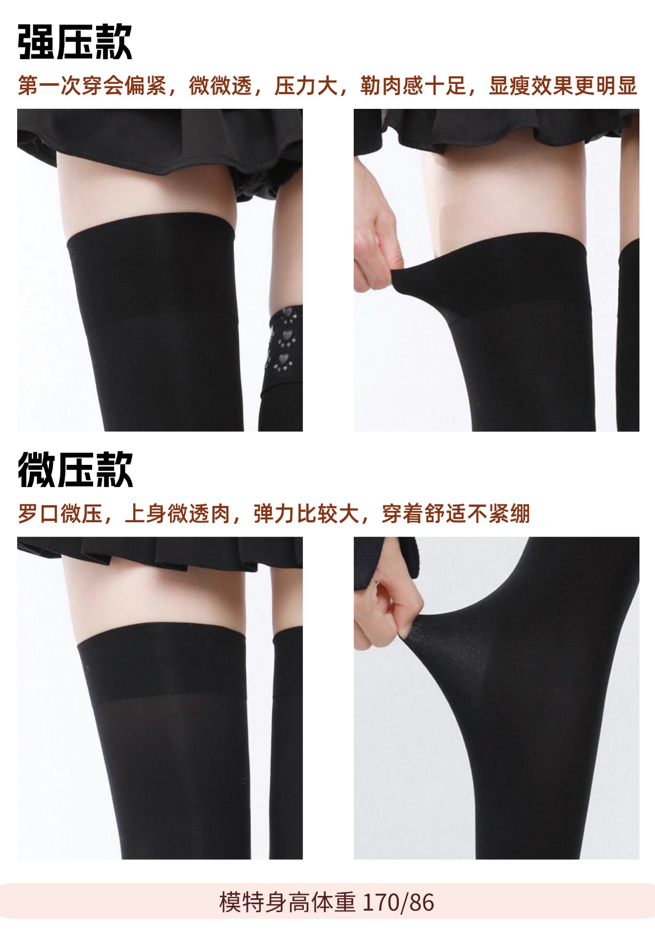 • 블랙/미세압력 무릎위 [55cm, 150-165cm 삼층 고양이발톱실리콘]