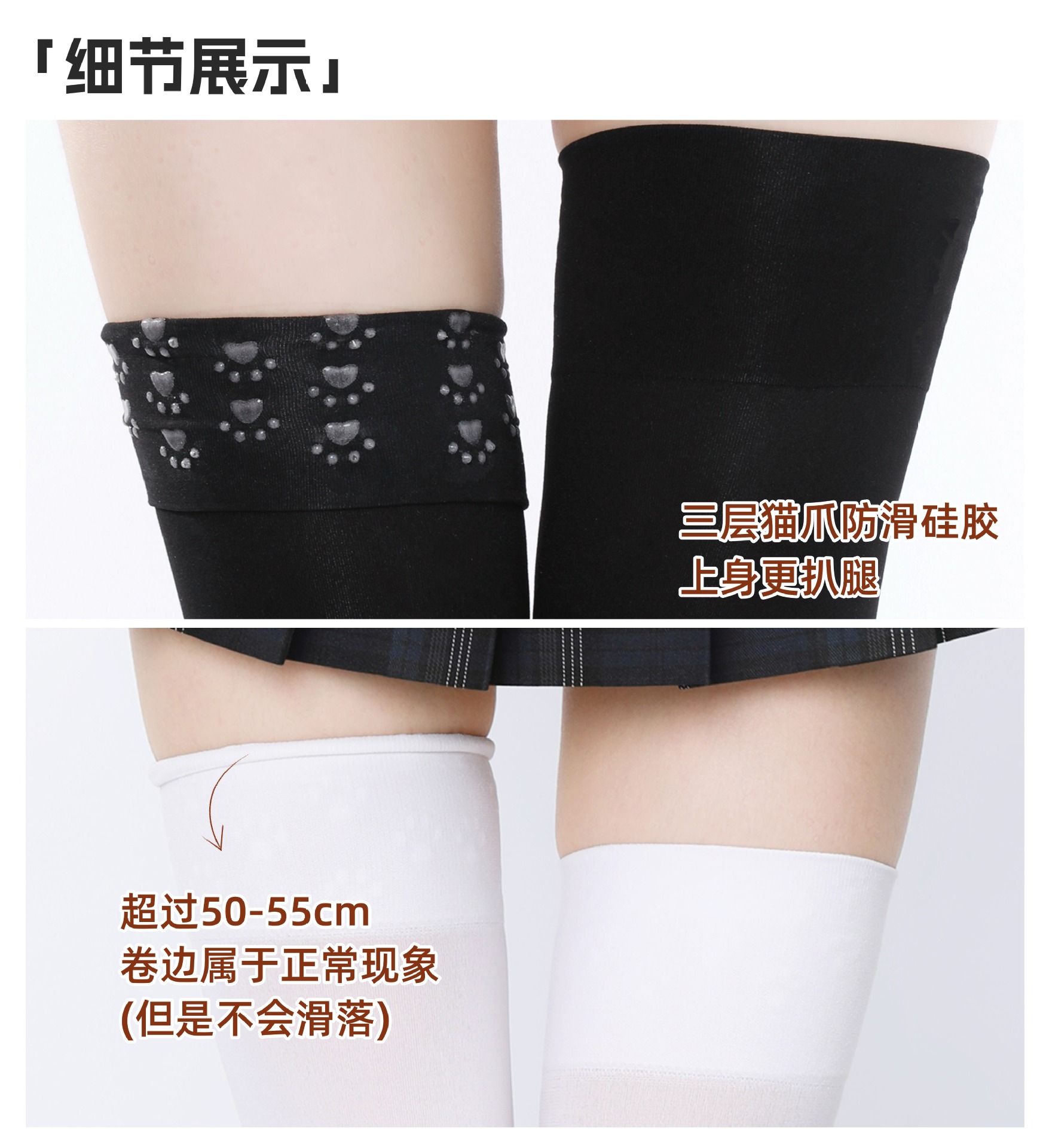 • 무릎 위 흰색/미세압력 [55cm, 150-165cm 2겹 고양이 발톱 실리콘]