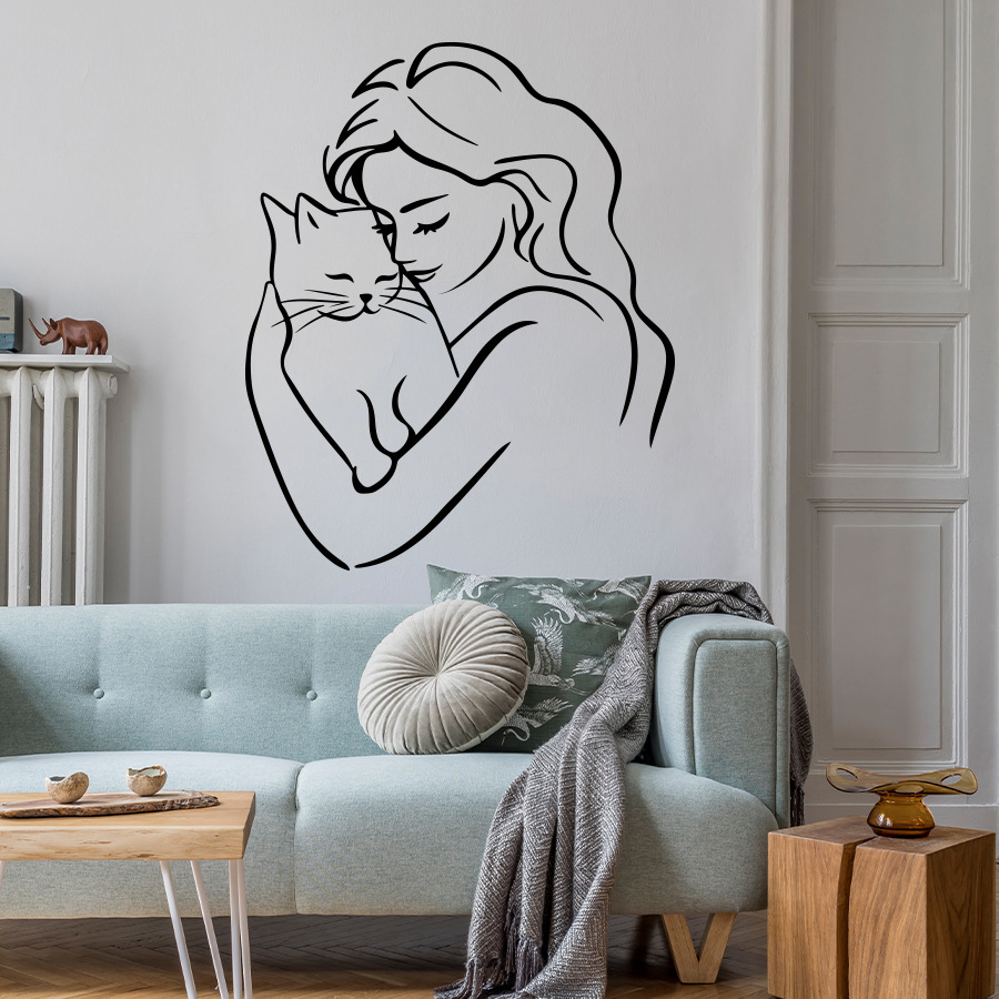 HS3465E 아름다움과 고양이 간단한 라인 자체 접착 벽 스티커 침실 연구 고양이 카페 애완 동물 가게 장식 스티커