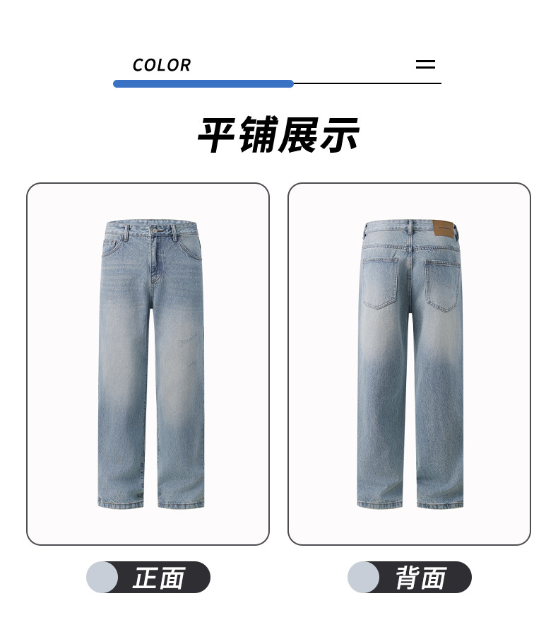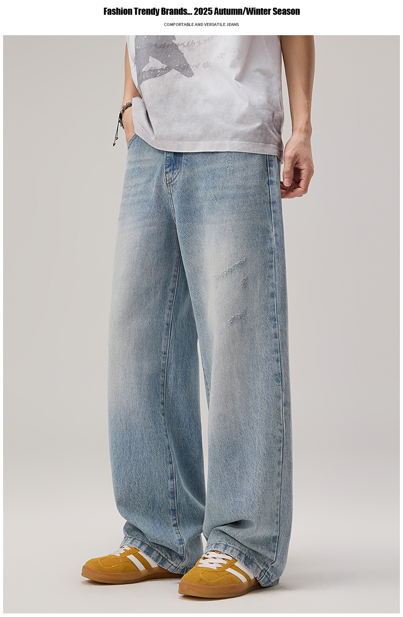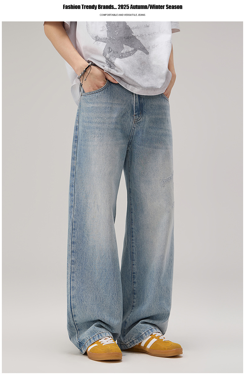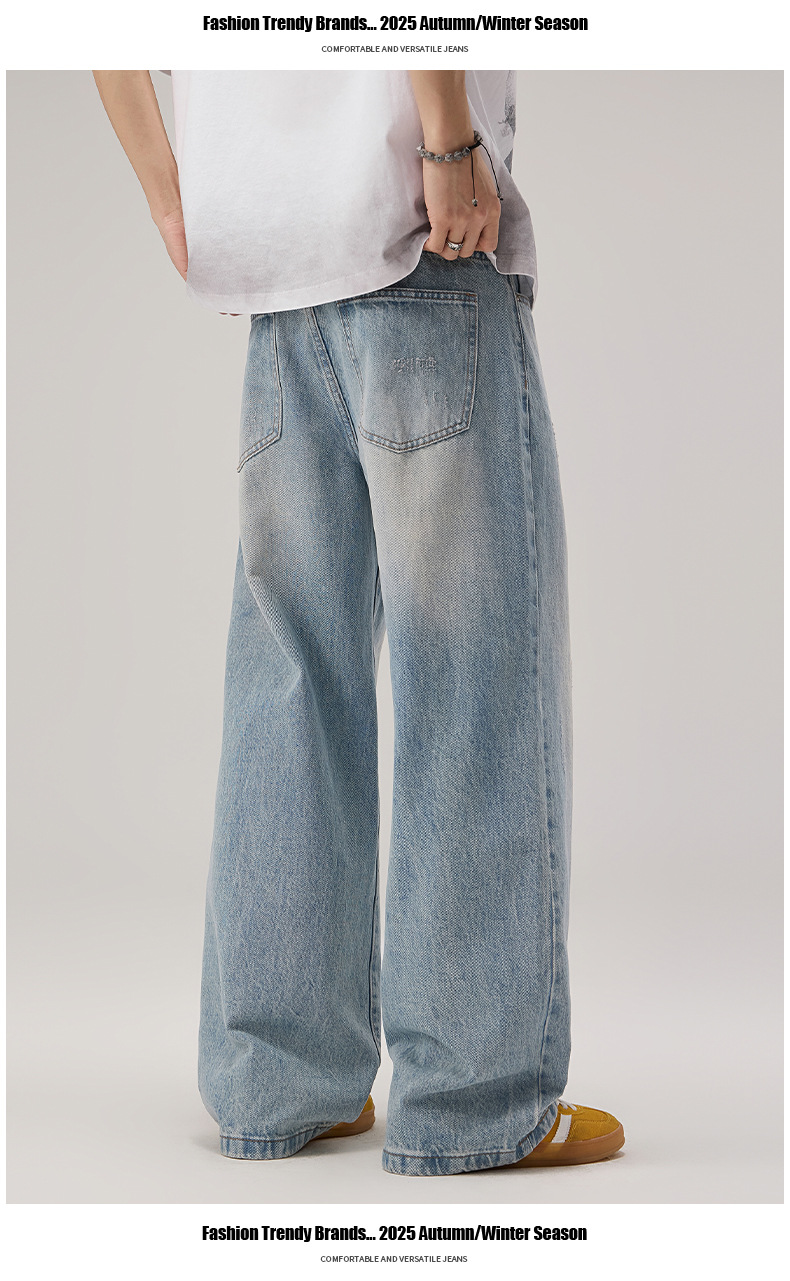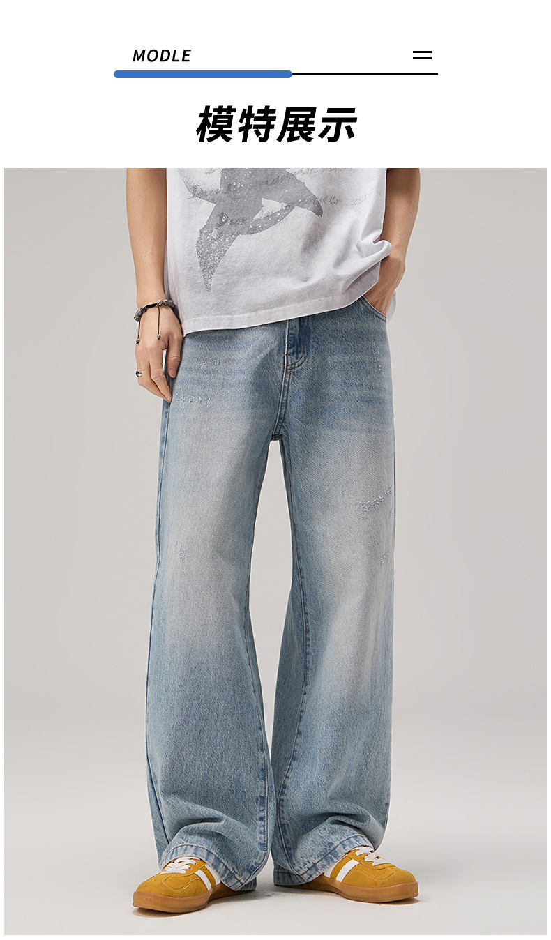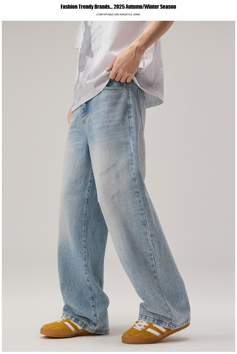 Muqiu 남성복 ∠ 2025 봄 새로운 미국 클린 핏 스트레이트 청바지 남성 통근 레트로 와이드 레그 팬츠스토어 가기