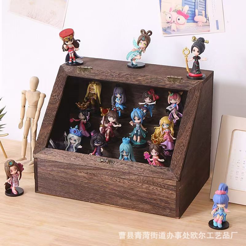 단단한 나무 블라인드 박스 저장 상자 디스플레이 랙 버블 마트 인형 디스플레이 랙 투명 레고 모델 유리 방진 캐비닛스토어 가기