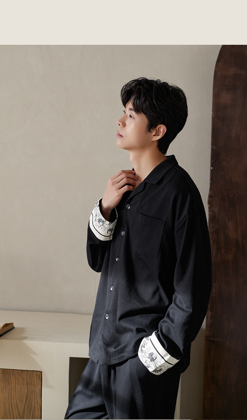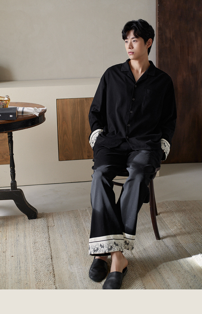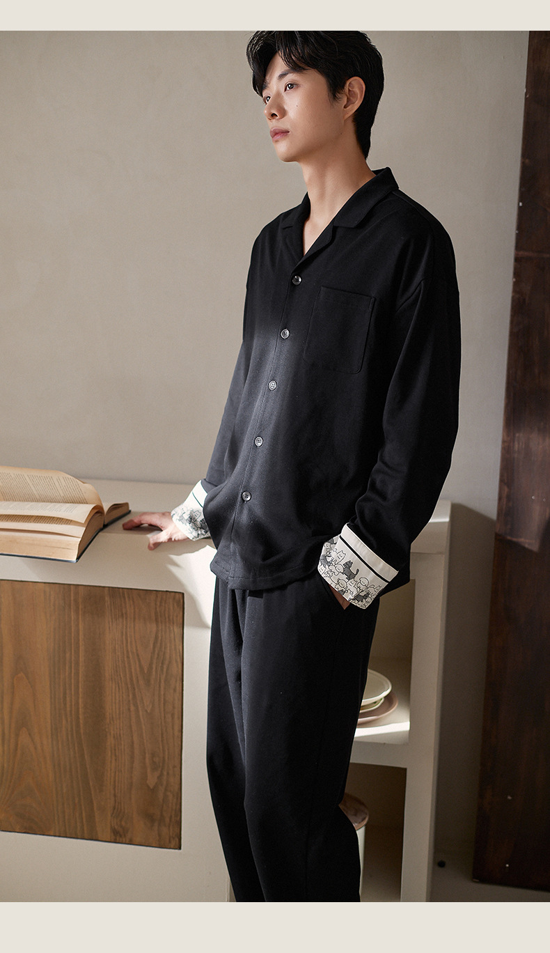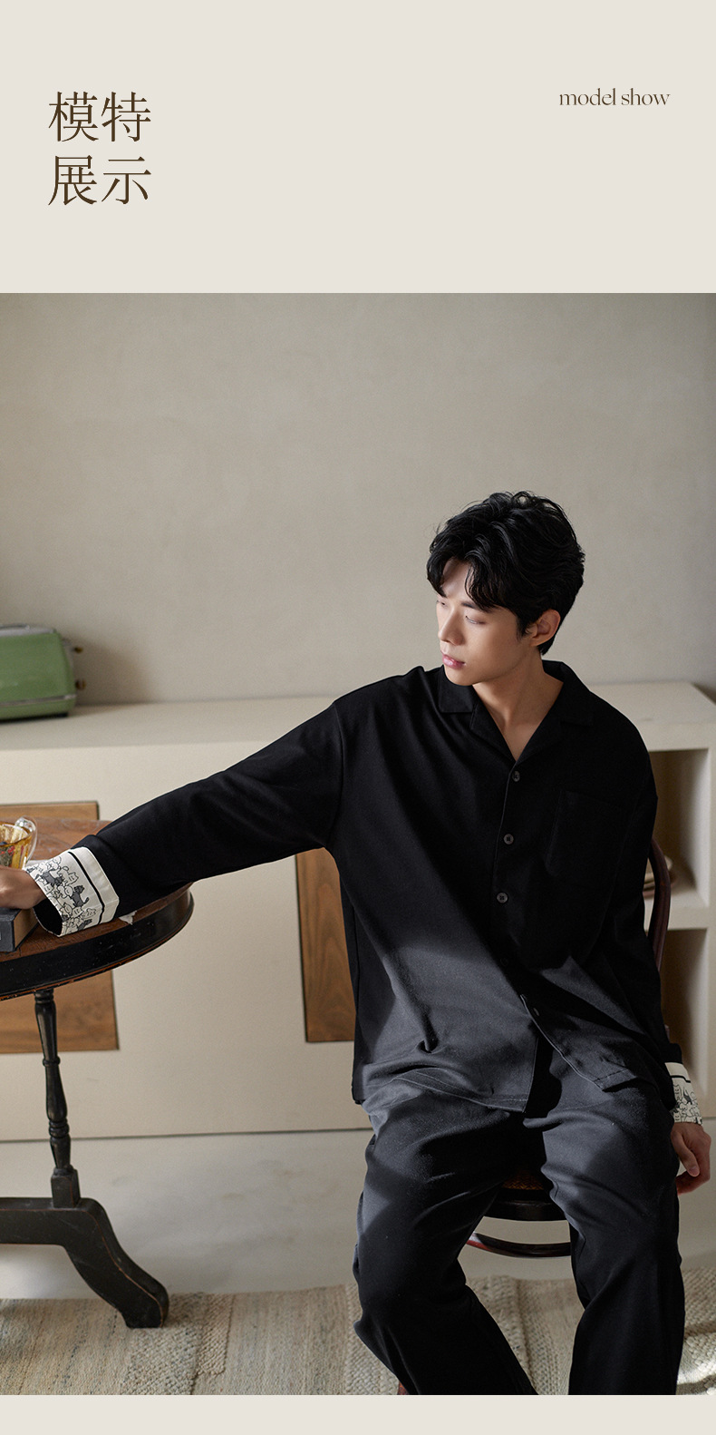 봄과 가을 잠옷 남성용 모달면 긴팔 유행 하이 엔드 아우터 얇은 남성용 홈 의류 세트 입고스토어 가기