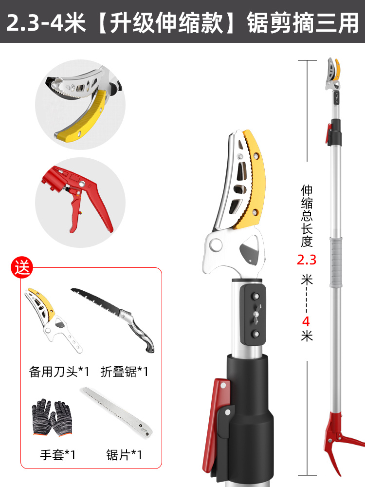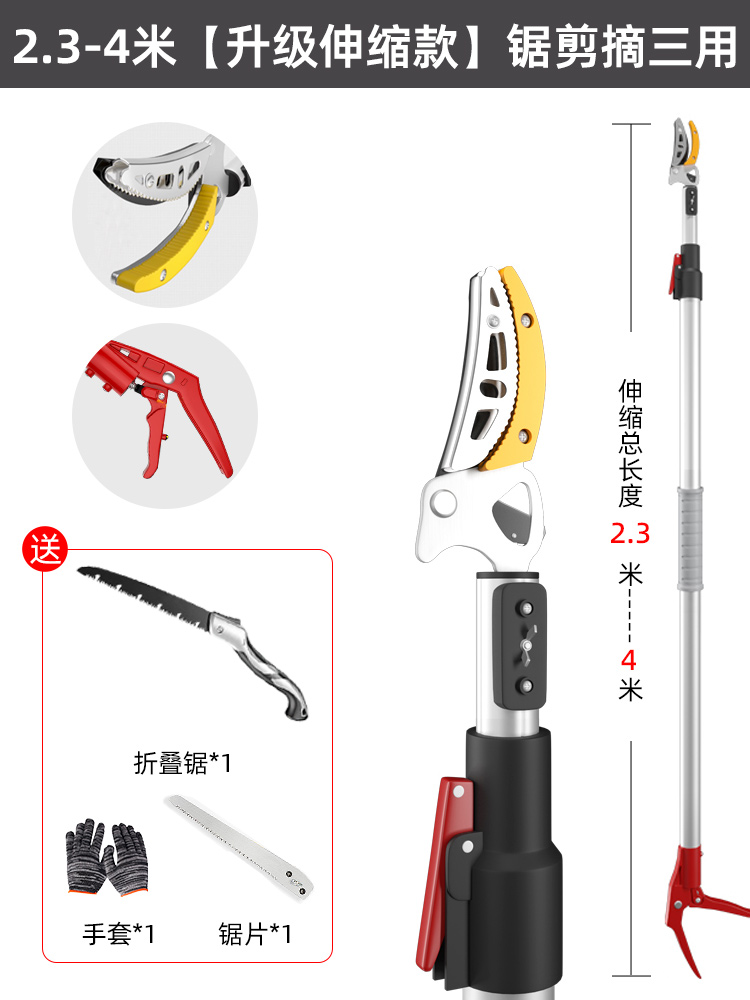 • 2.3- 4m [업그레이드된 텔레스코픽 모델] 톱과 전단의 3가지 용도(원예용 3종 세트 포함)