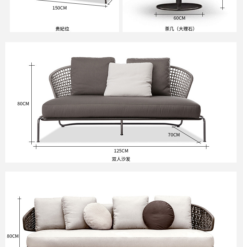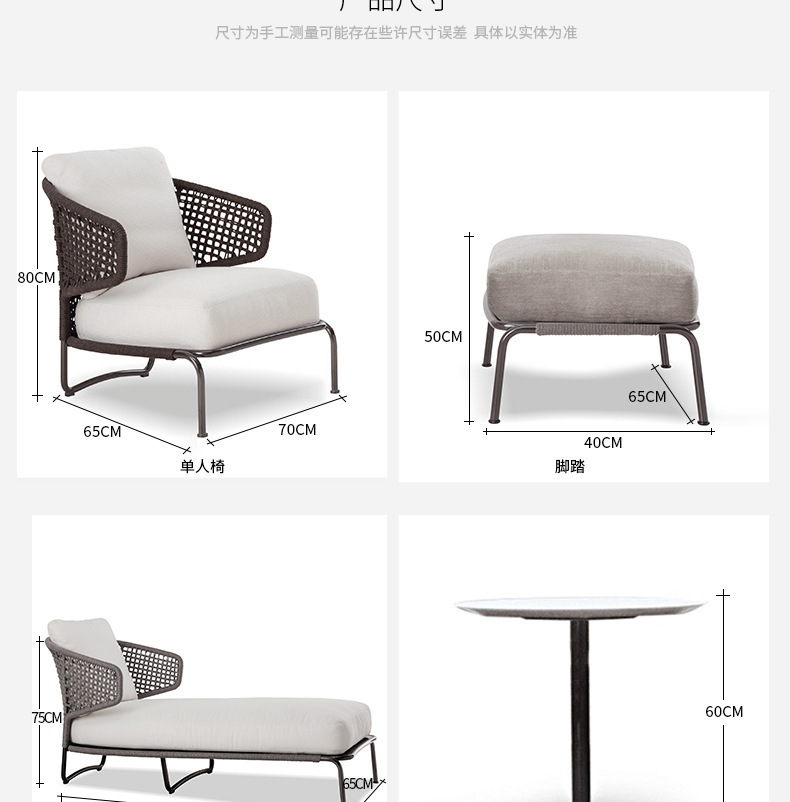 야외 소파 정원 발코니 안뜰 호텔 빌라 단일 로프 등나무 레저 가구 테이블과 의자 조합