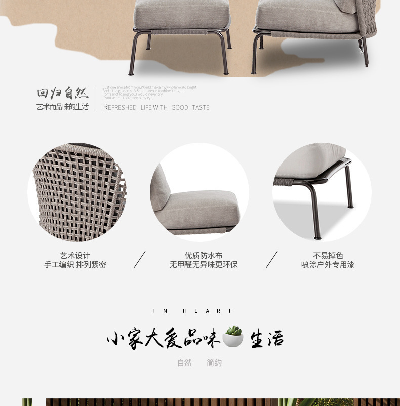 야외 소파 정원 발코니 안뜰 호텔 빌라 단일 로프 등나무 레저 가구 테이블과 의자 조합스토어 가기