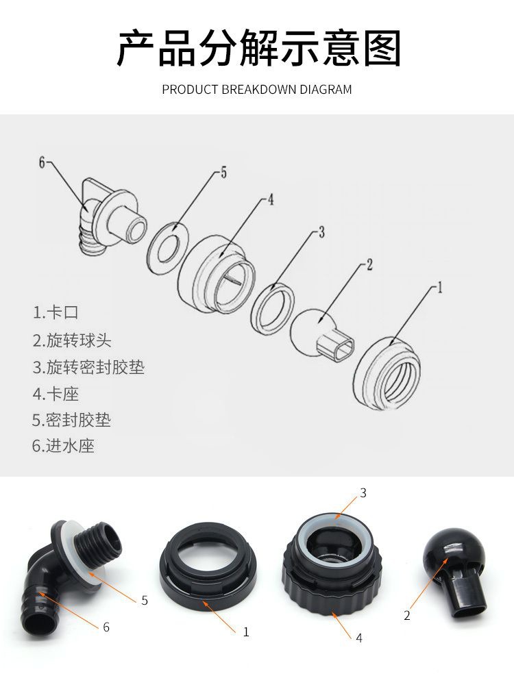 어항 출구 수정 액세서리 해수 탱크 사이드 필터 백 필터 다기능 회전 노즐 수도관 인터페이스스토어 가기