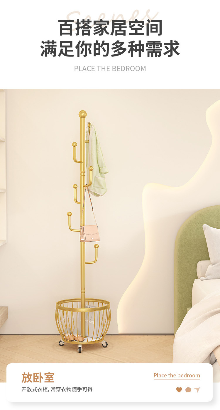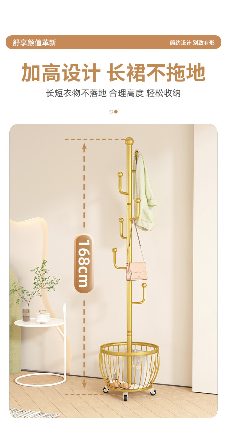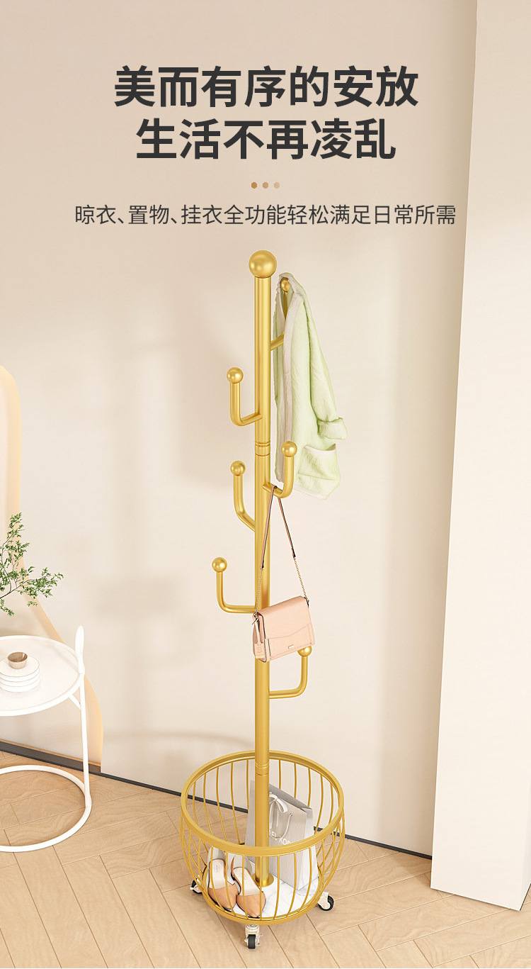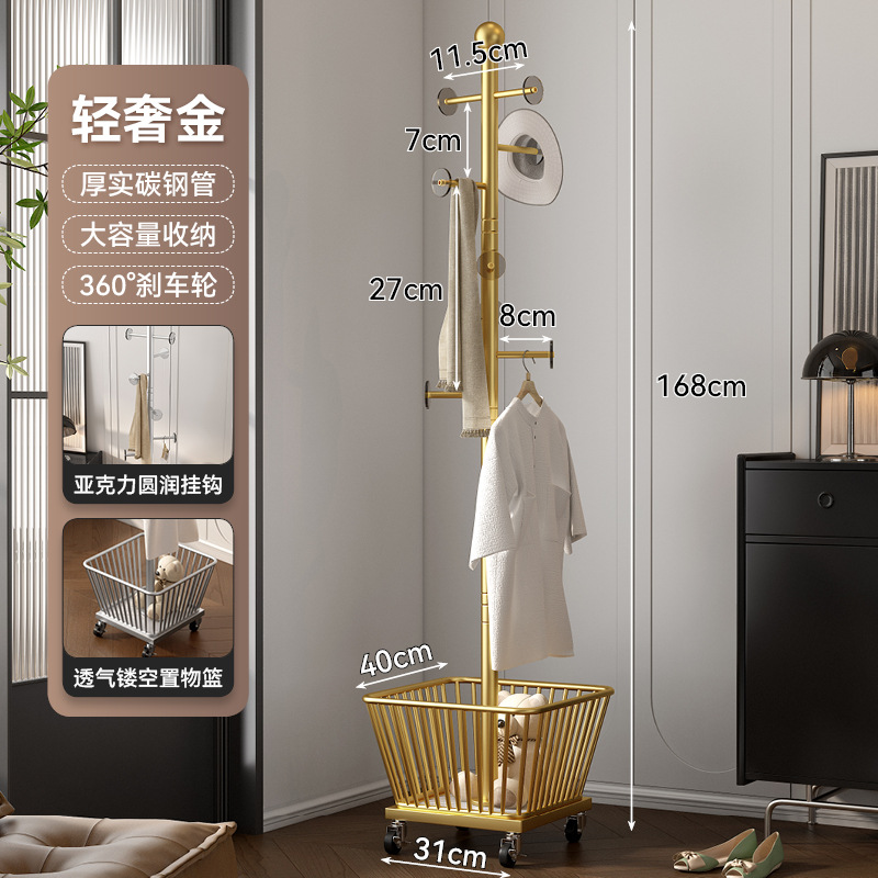 • 라이트 럭셔리 골드 - 매우 두껍고 대담함⭐선인장 크로스바 4 후크 메쉬 바구니 보관 - 범용 바퀴.