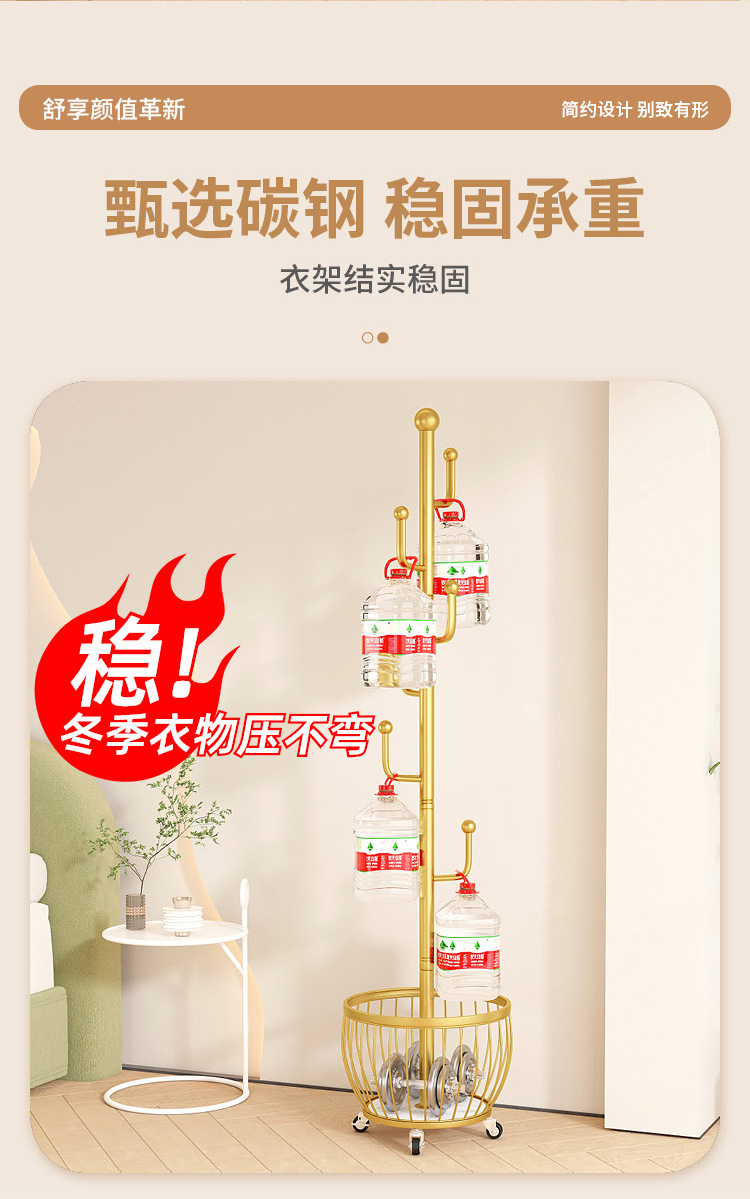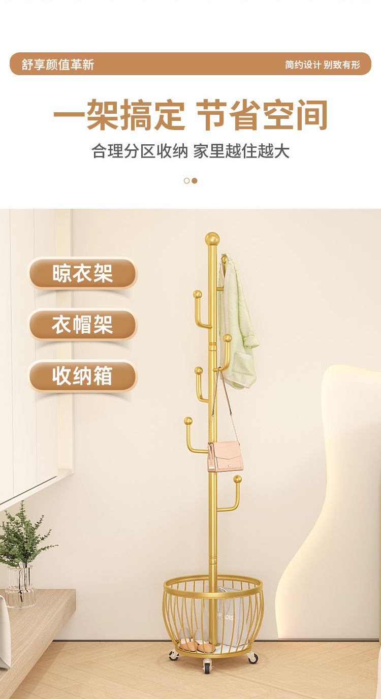 • 라이트 럭셔리 골드 - 매우 두껍고 대담함⭐선인장 6 후크 메쉬 바구니 보관 - 범용 바퀴.