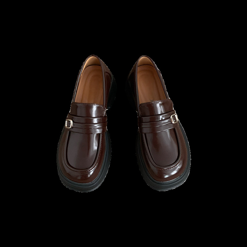 다크 브라운 레트로 영국 스타일 고층 플랫폼 작은 가죽 신발 여성의 2025 봄 새로운 프랑스 슬립 온 사랑 싱글 레이어 신발