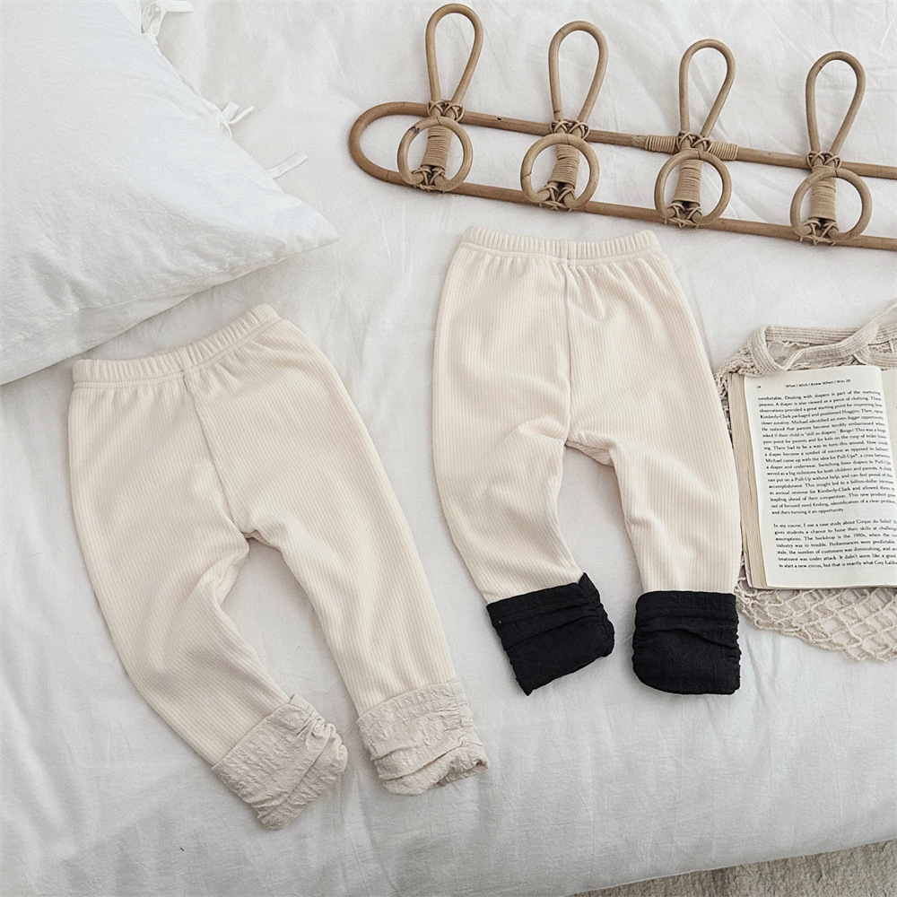 INS 가을/겨울 더블 레이어 기모 아기 돼지 대장 발 입 더미 바지 아기 소녀 기모 슬림 핏 레깅스