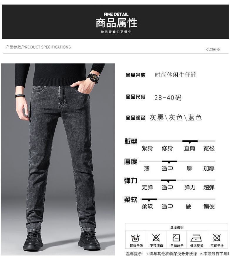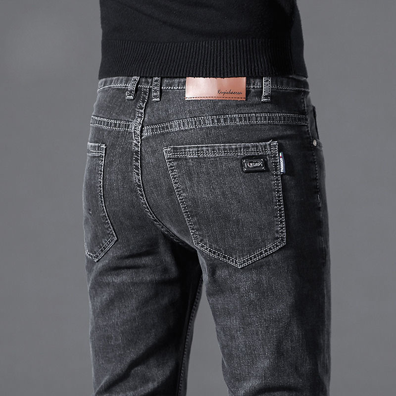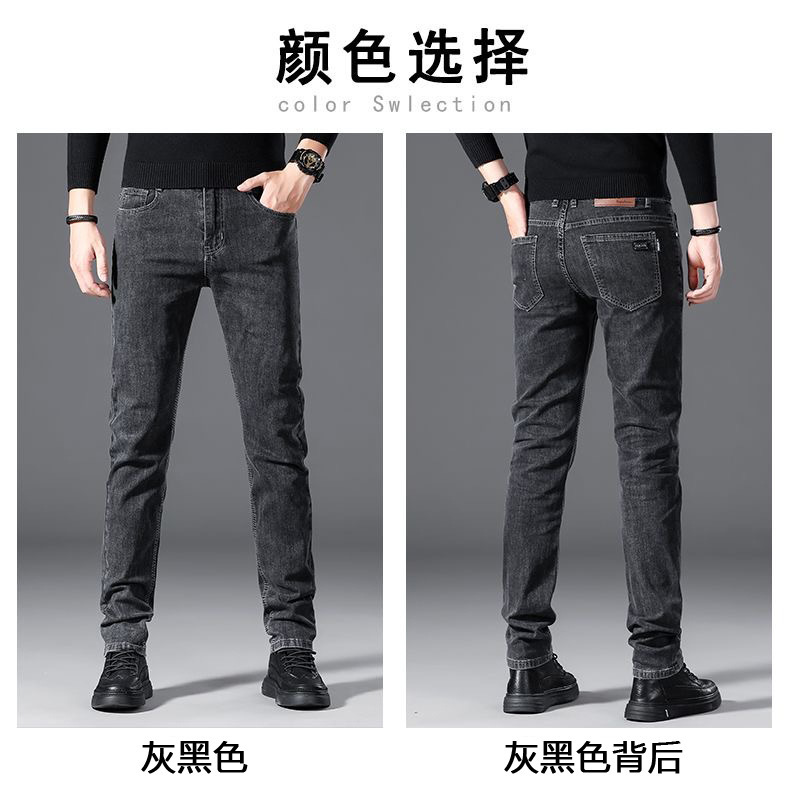 2025 봄 새로운 남자 데님 바지 남자 탄성 슬림 비즈니스 캐주얼 바지 올 매치 바지 작은 스트레이트 바지스토어 가기