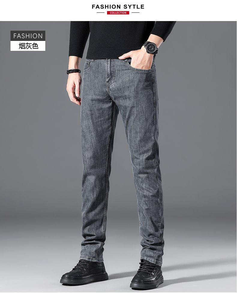 2025 봄 새로운 남자 데님 바지 남자 탄성 슬림 비즈니스 캐주얼 바지 올 매치 바지 작은 스트레이트 바지