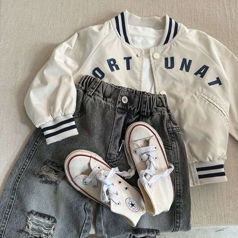 어린이 야구 세트 소년 2025 봄과 가을 새로운 어린이 편지 재킷 한국 아기 단색 여성 서양식 재킷