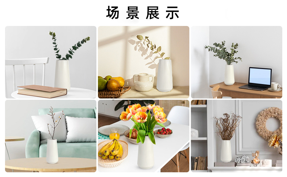 아마존 세라믹 꽃병 창조적 인 집 거실 화이트 수경 꽃 세트 북유럽 말린 꽃 꽃 관상용 진자